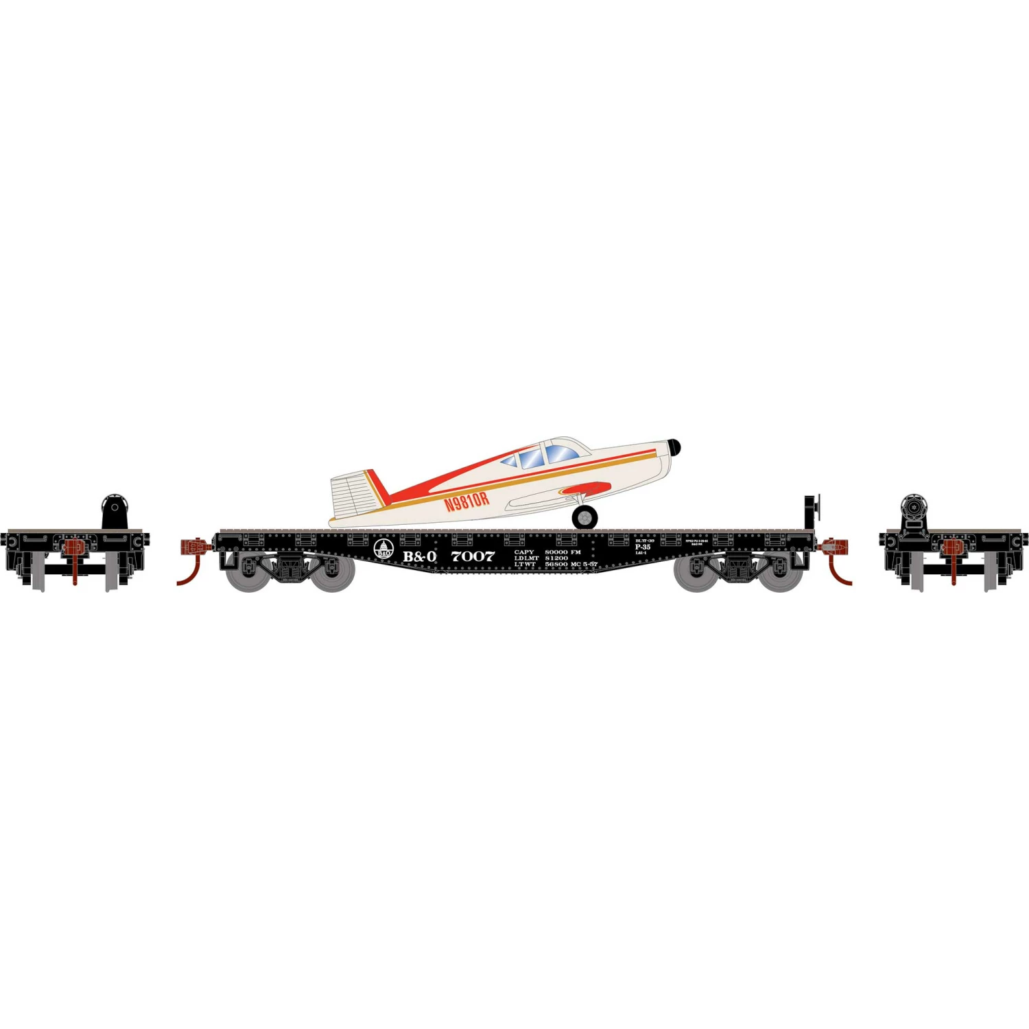 Athearn HO 40′ Flat Car with Plane, B&O # 7007 for Freight Cars