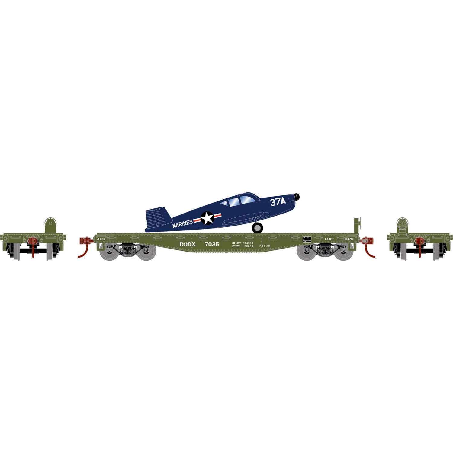 Athearn HO 40′ Flat Car with Plane, DODX, Marines #7035 for Freight Cars
