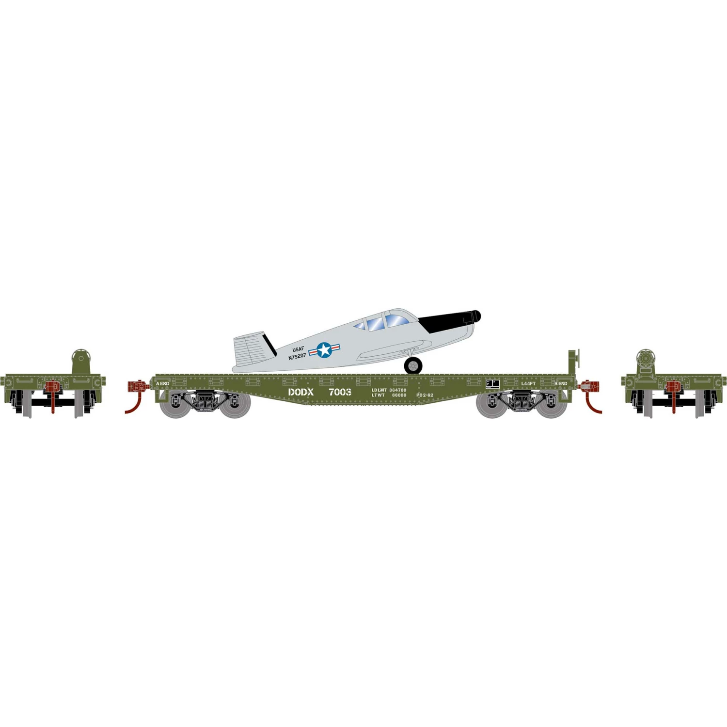 Athearn HO 40′ Flat Car with Plane, DODX, USAF #7003 for Freight Cars
