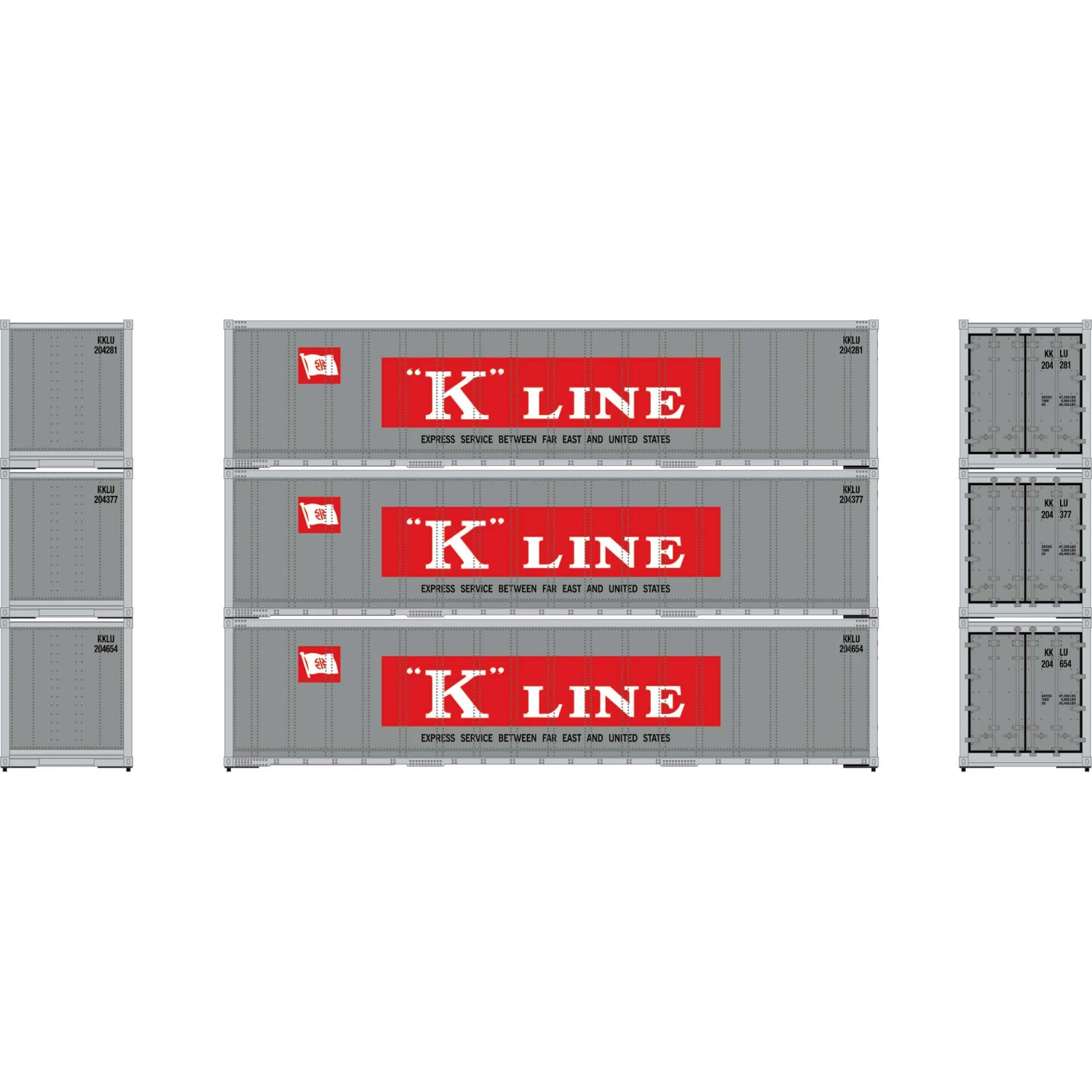 Athearn HO 40′ Smooth Side Containers, KKLU #1 (3) for Vehicles & Containers
