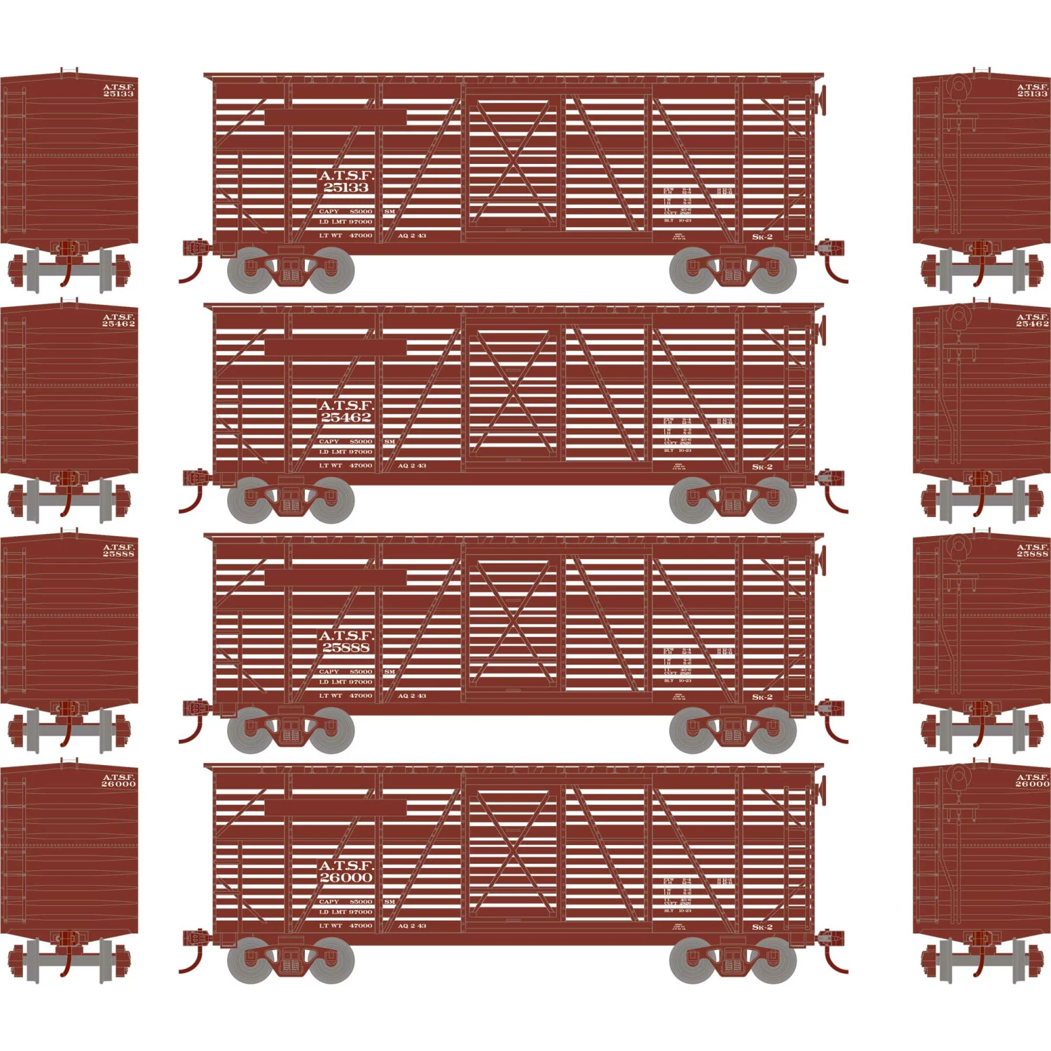 Athearn HO 40′ Stock Car, ATSF #1 (4) for Freight Cars