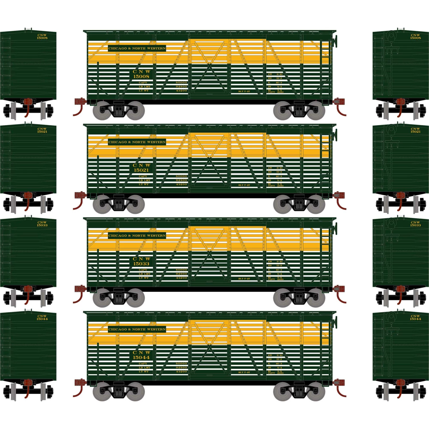 Athearn HO 40′ Stock Car, C&NW #1 (4) for Freight Cars