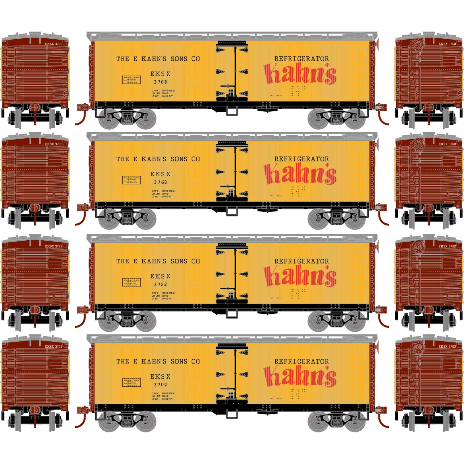 Athearn HO 40′ Wood Reefer, EKSK (4) for Freight Cars