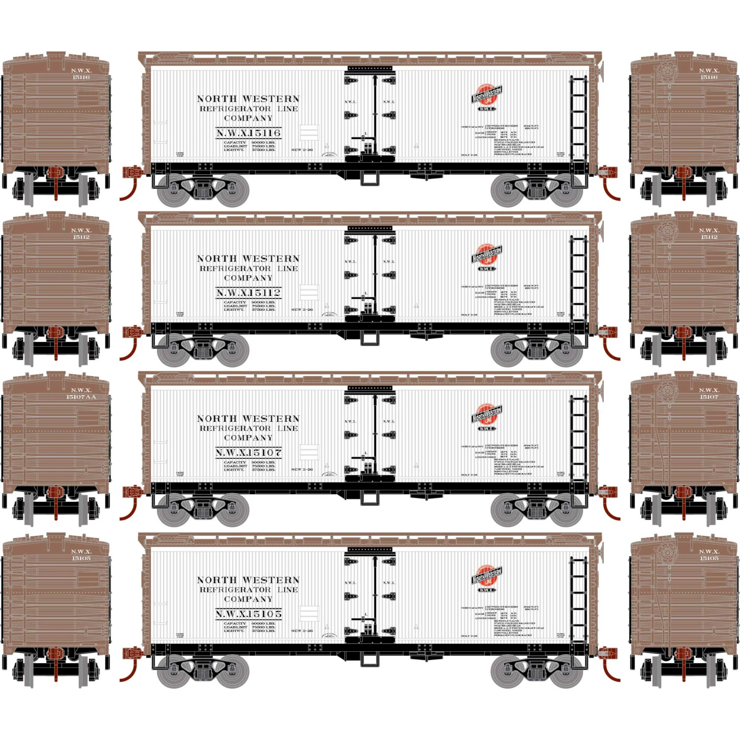Athearn HO 40′ Wood Reefer, NWX (4) for Freight Cars