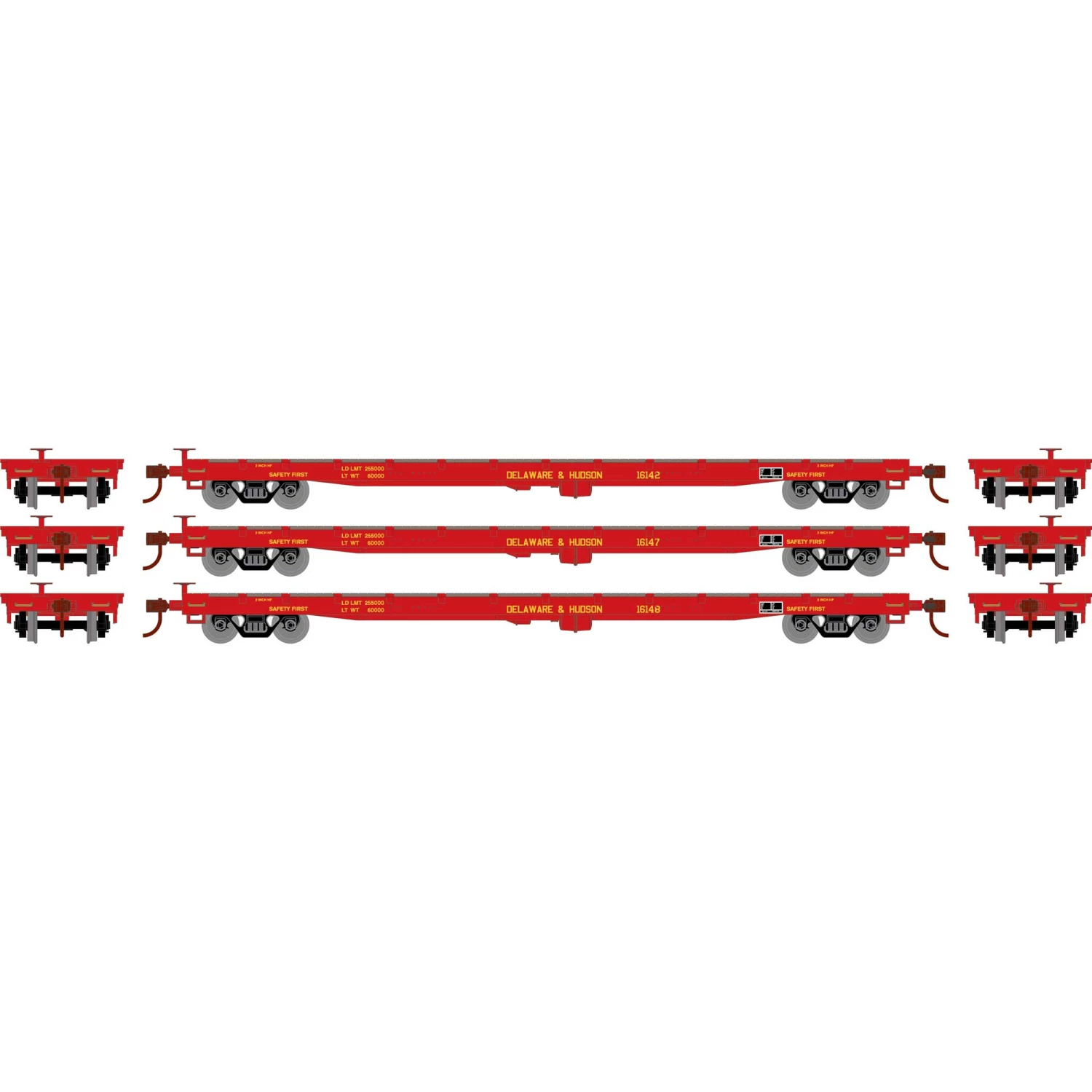 Athearn HO 60′ Flat, D&H (3) for Freight Cars