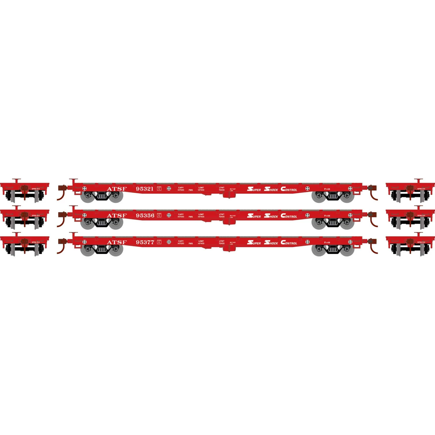 Athearn HO 60′ Flat, SF (3) for Freight Cars