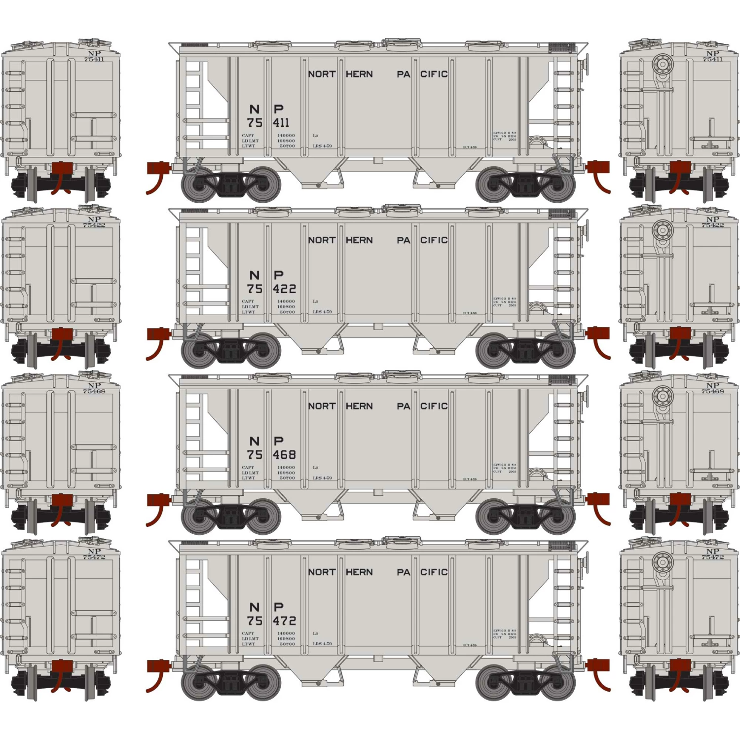 Athearn HO PS-2 2003 2-Bay Covered Hopper NP (4) for Freight Cars