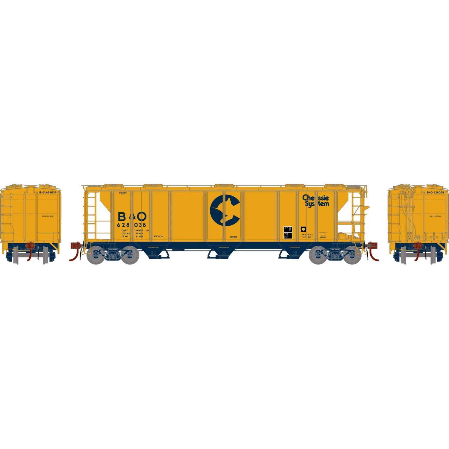 Athearn HO PS-2 2893 3-Bay Covered Hopper, B&O #628038 for Freight Cars
