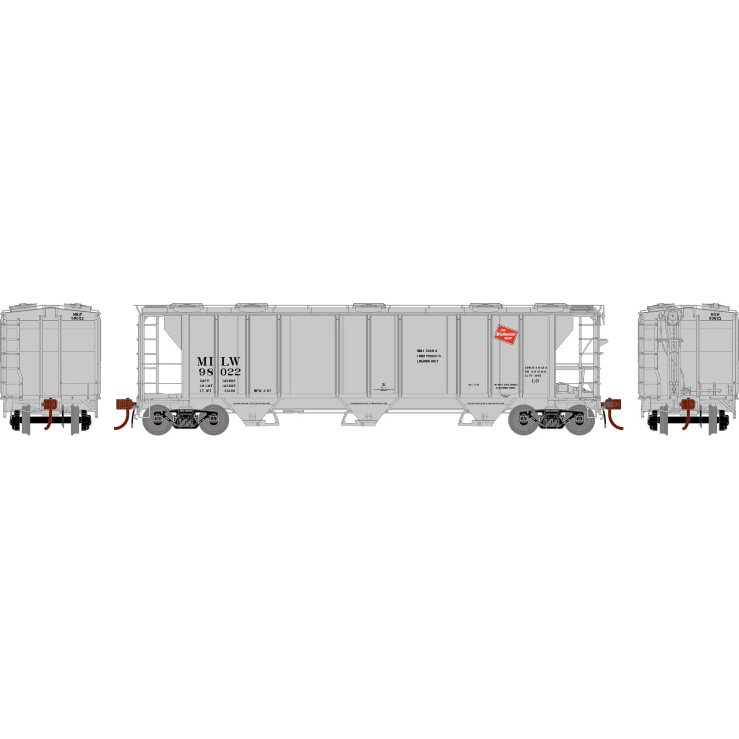 Athearn HO PS-2 2893 3-Bay Covered Hopper, MILW #98022 for Freight Cars