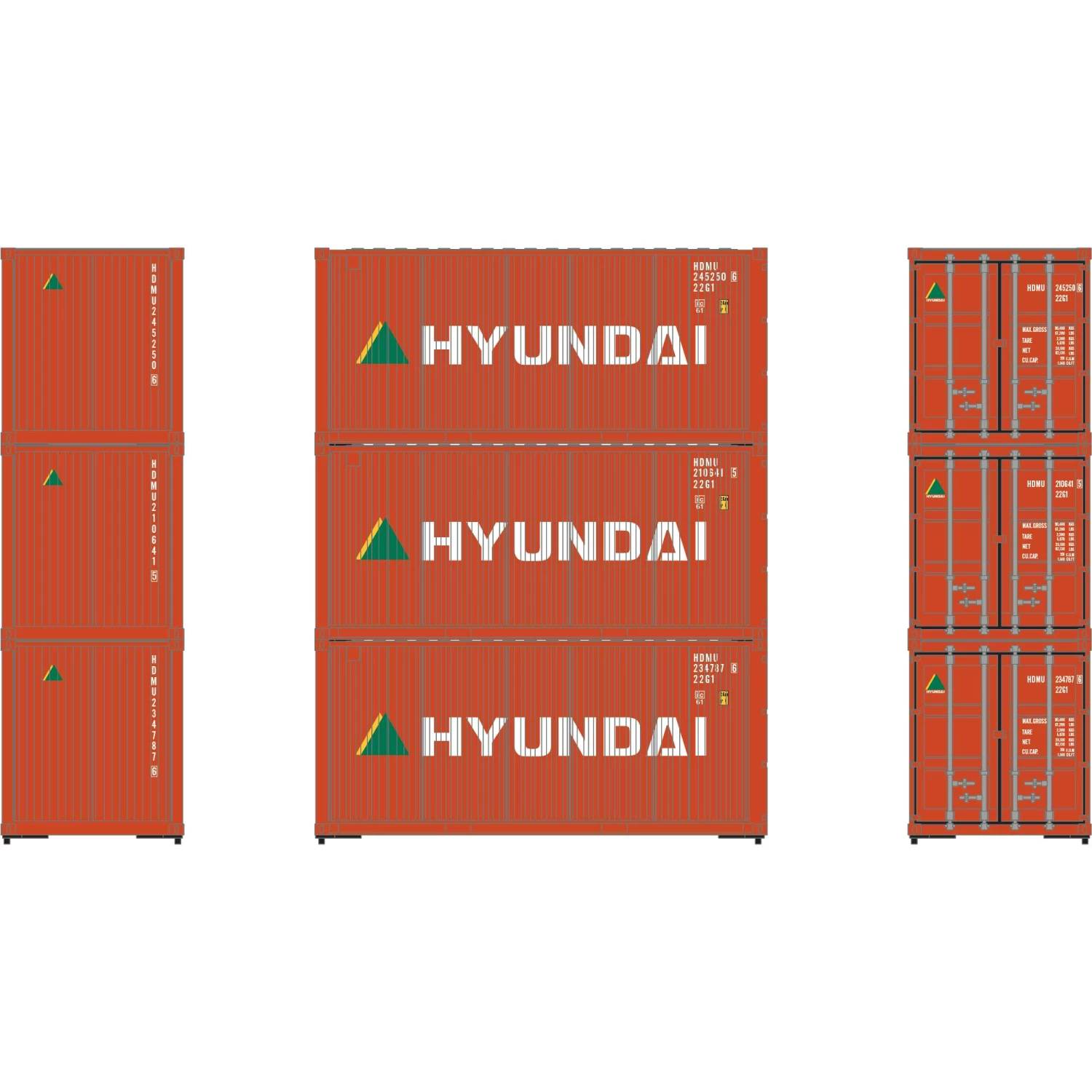 Athearn HO RTR 20′ Corrugated Container, HDMU #2 (3) for Freight Cars