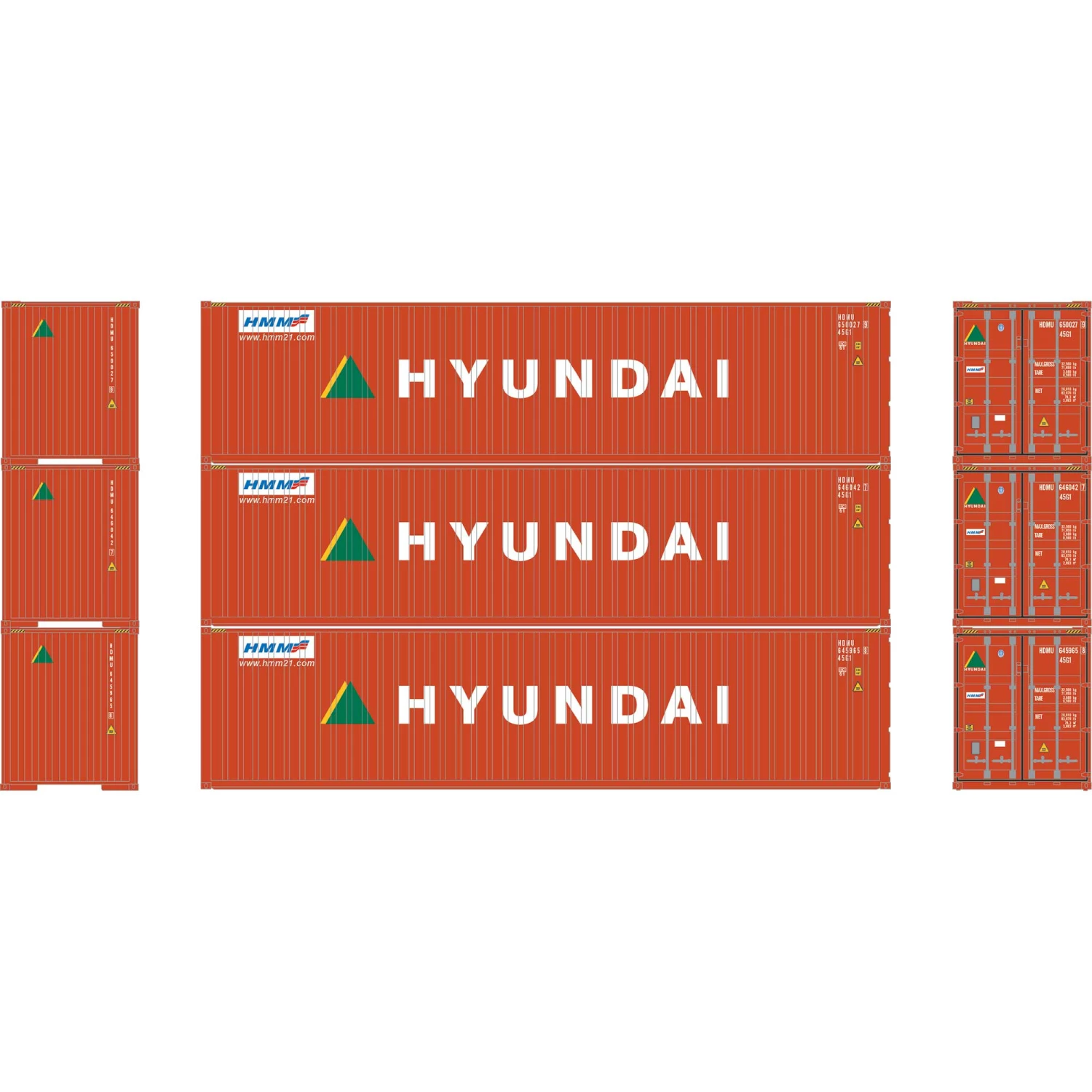 Athearn HO RTR 40′ Corrugated Container, Hyundai (3) for Vehicles & Containers