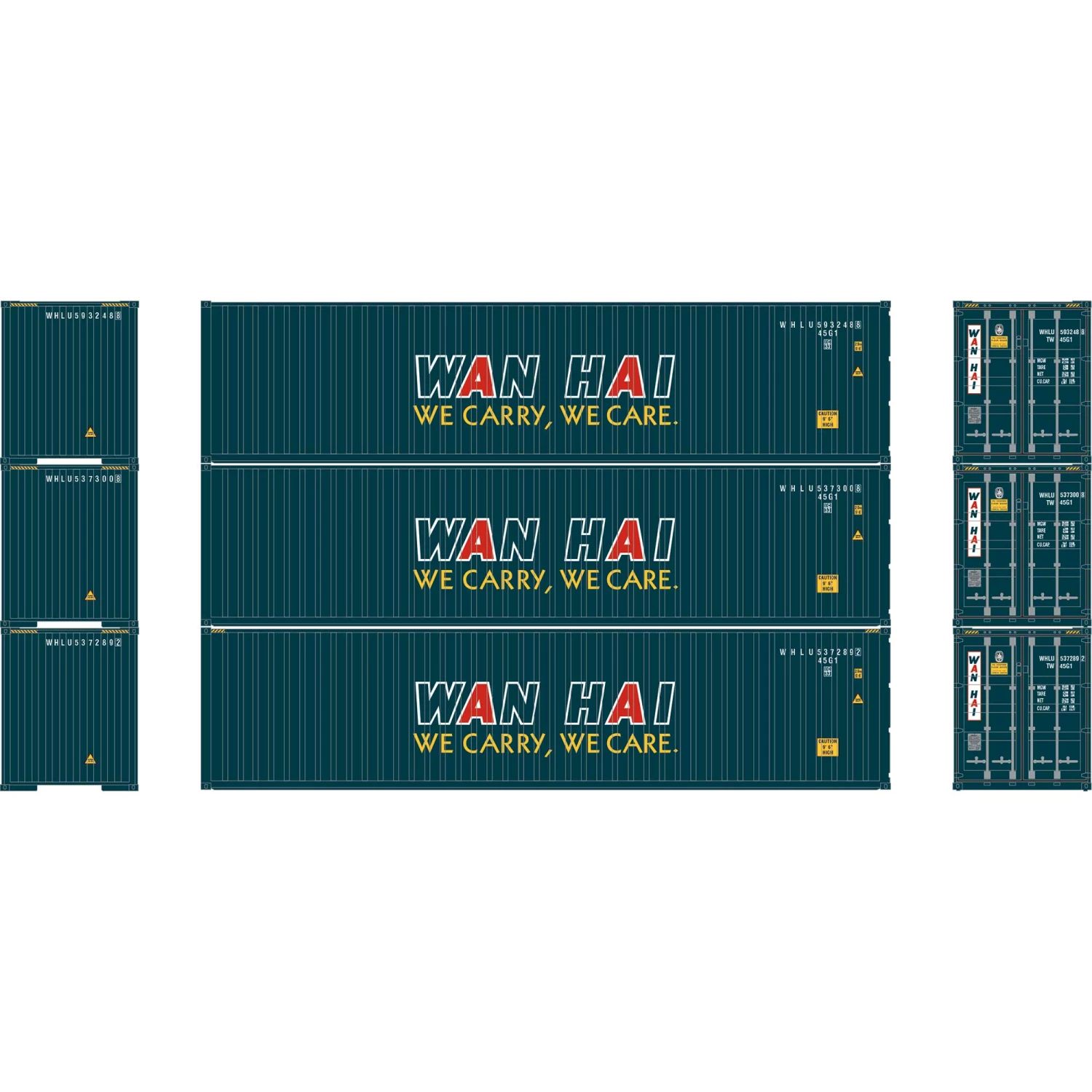 Athearn HO RTR 40′ Corrugated Container, Wan Hai (3) for Vehicles & Containers