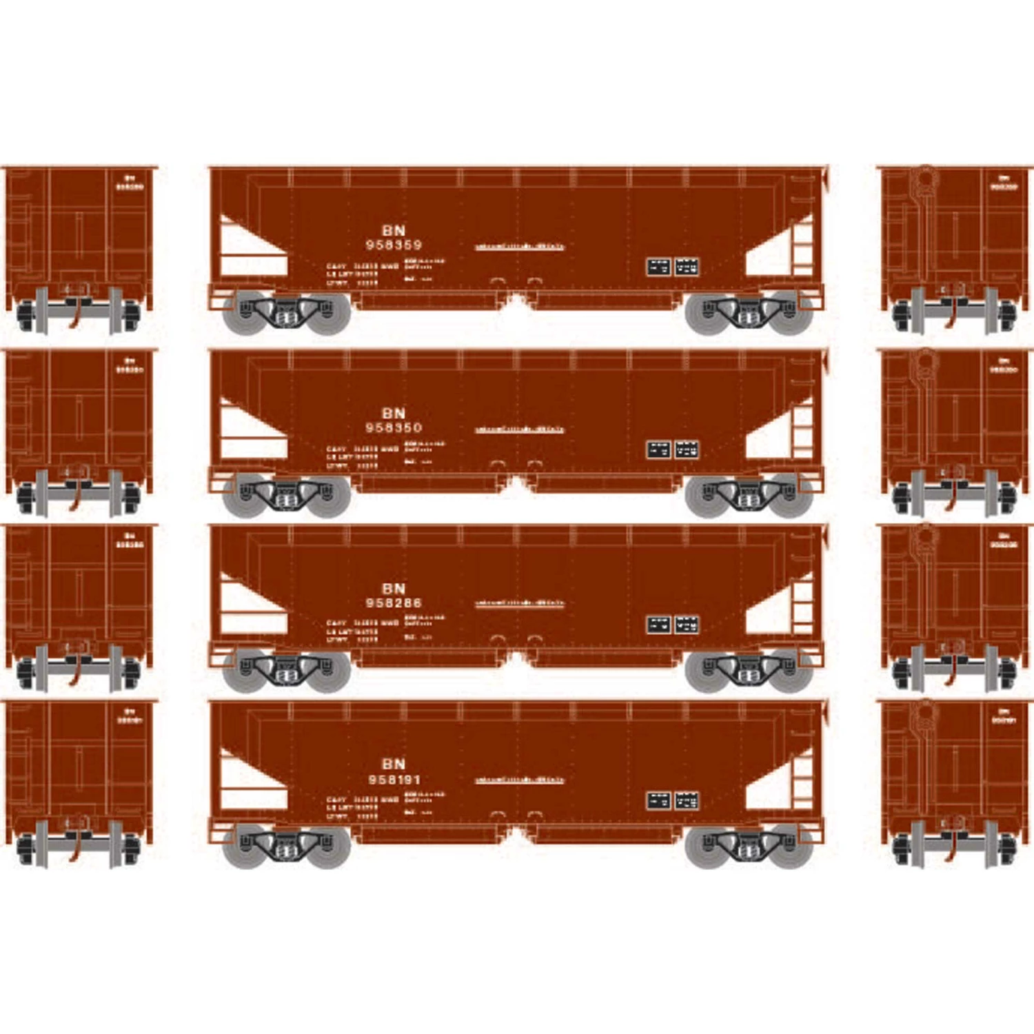 Athearn HO RTR 40′ Offset Ballast Hopper with Load, BN #1 (4) for Freight Cars