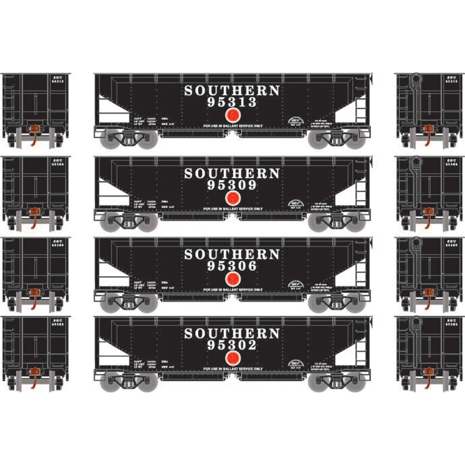 Athearn HO RTR 40′ Offset Ballast Hopper with Load, SOU #1 (4) for Freight Cars