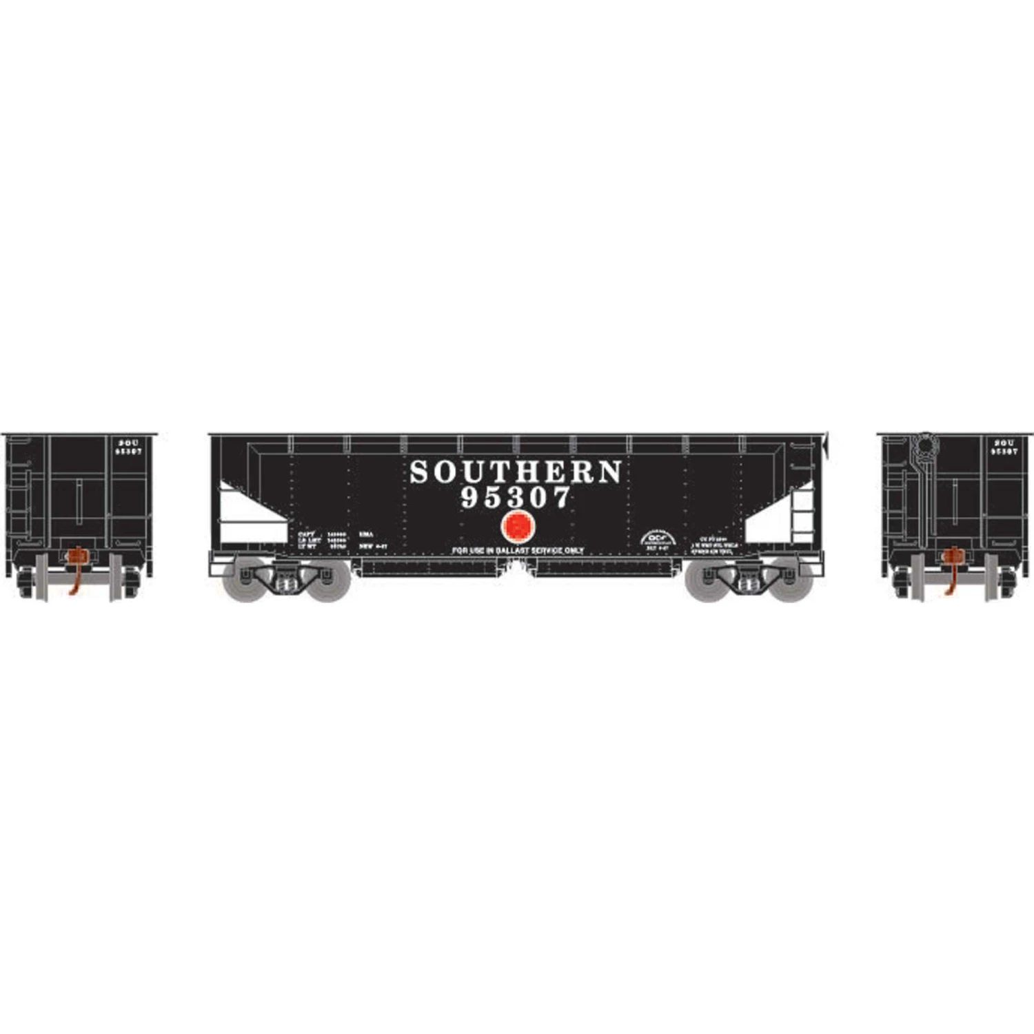 Athearn HO RTR 40′ Offset Ballast Hopper with Load, SOU #95307 for Freight Cars