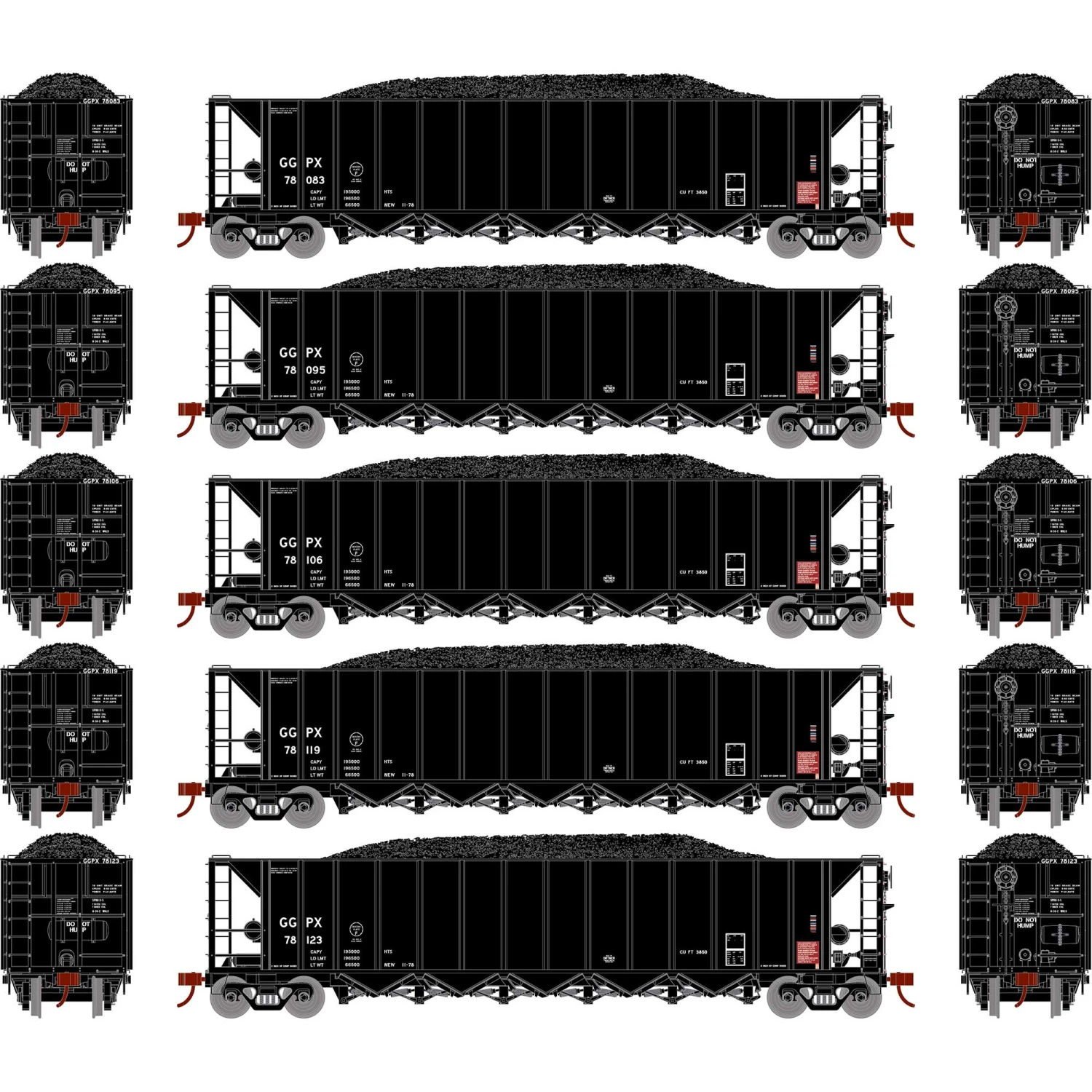 Athearn HO RTR 5-Bay Rapid Discharge Hopper, GGPX #2 (5) for Freight Cars