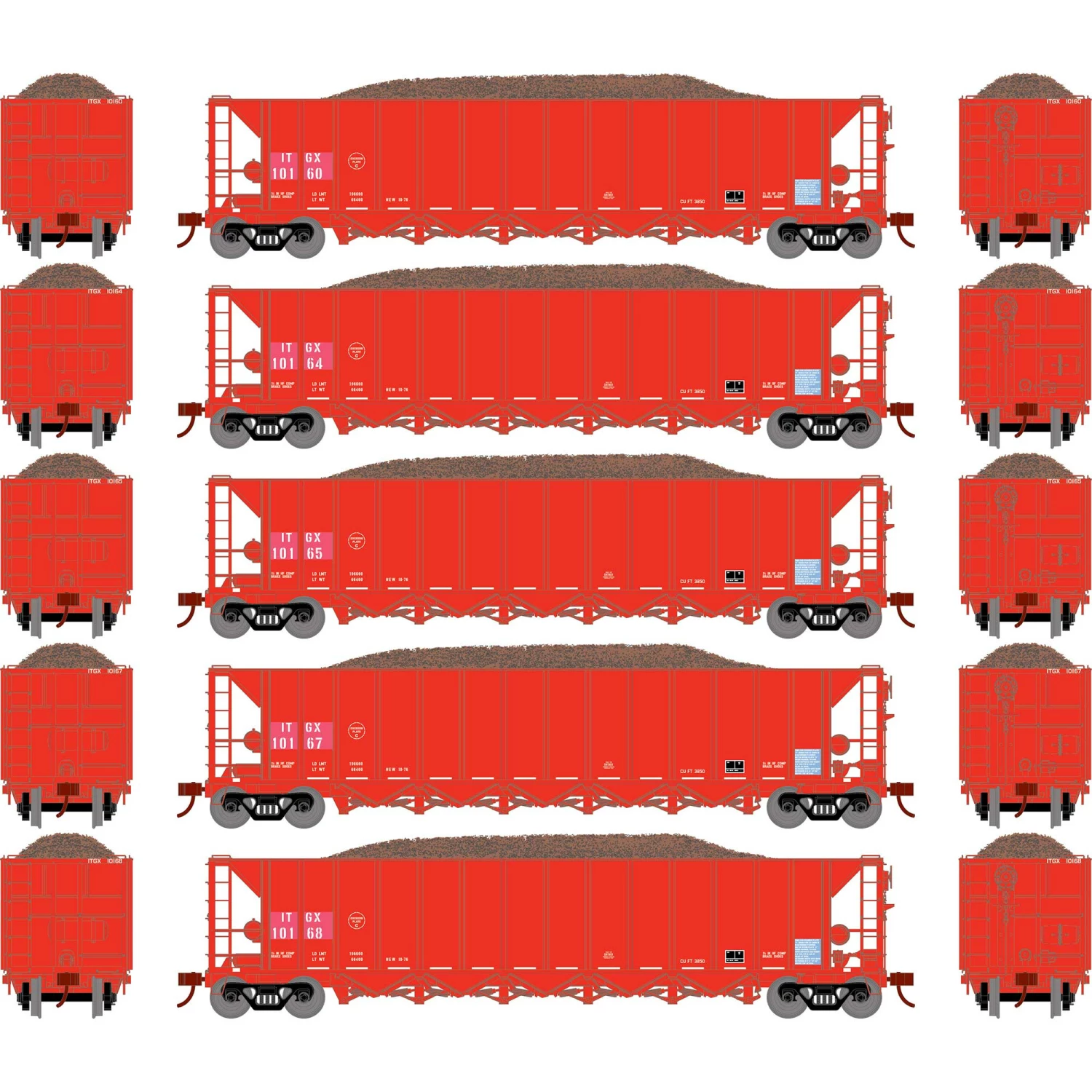 Athearn HO RTR 5-Bay Rapid Discharge Hopper ITGX Red (5) for Freight Cars