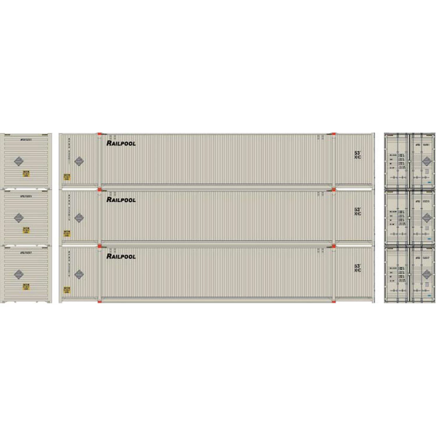 Athearn HO RTR 53′ CIMC Container, Railpool #2 (3) for Freight Cars