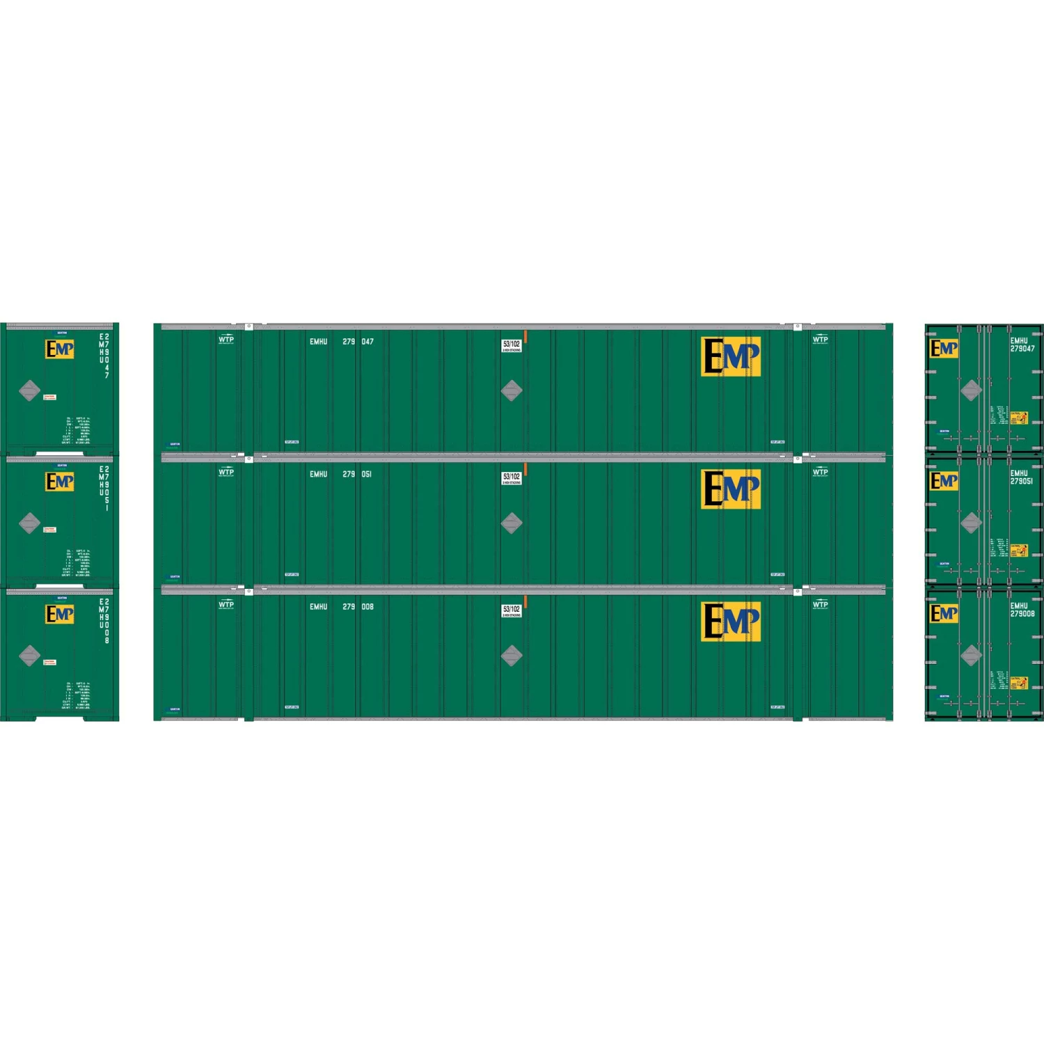Athearn HO RTR 53′ Stoughton Containers, EMP # 2 (3) for Vehicles & Containers