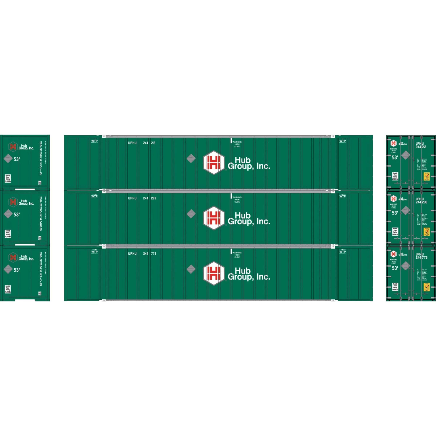 Athearn HO RTR 53′ Stoughton Containers, Hub Group #2 (3) for Vehicles & Containers