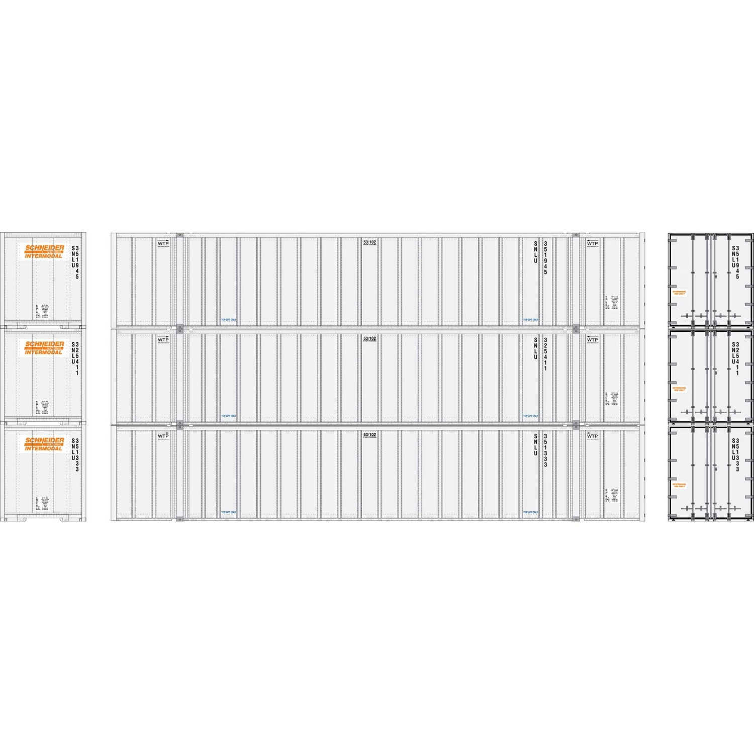 Athearn HO RTR 53′ Stoughton Containers, Schneider # 2(3) for Vehicles & Containers