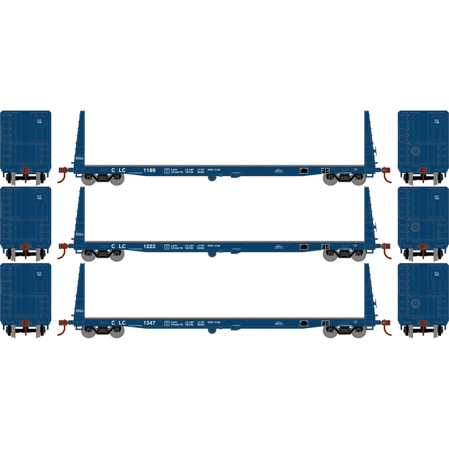 Athearn HO RTR 60′ Bulkhead Flat, CLC (3) for Freight Cars