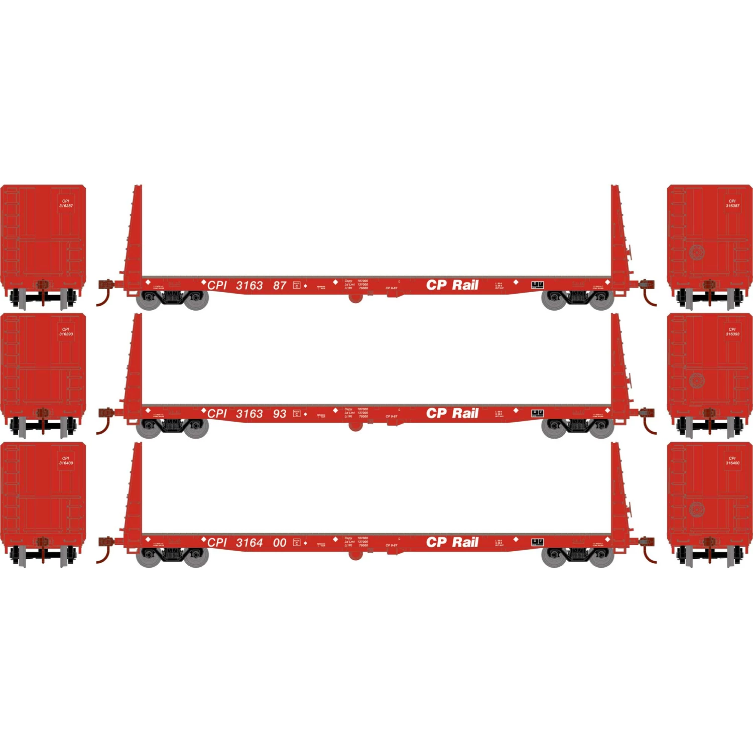 Athearn HO RTR 60′ Bulkhead Flat, CPR (3) for Freight Cars