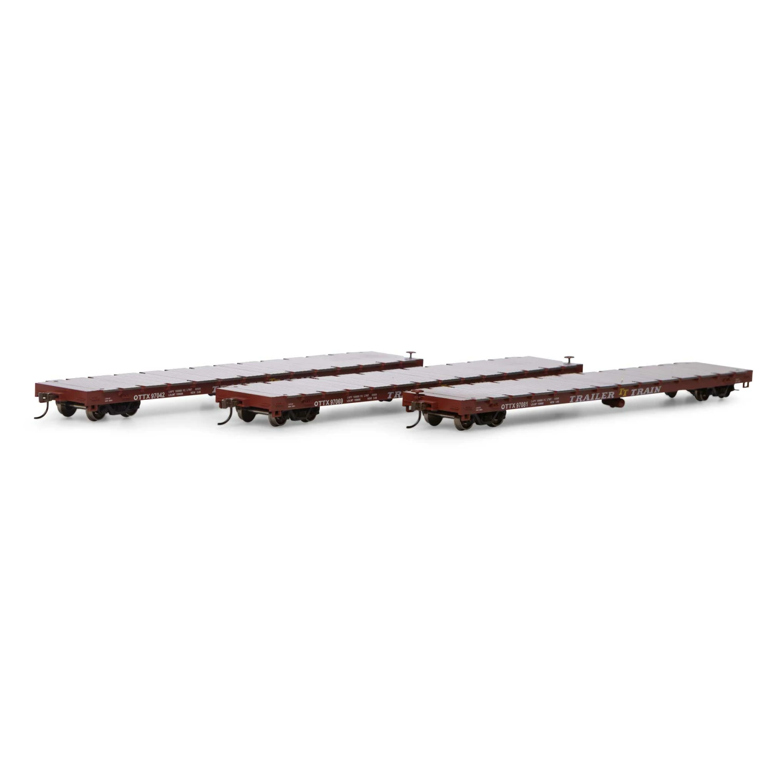 Athearn HO RTR 60′ Flat Car, OTTX/Brown Logo (3) for Freight Cars
