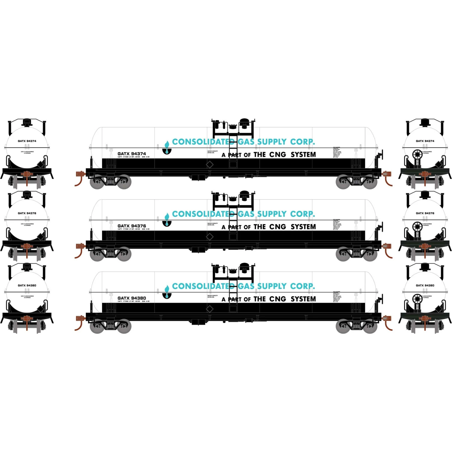 Athearn HO RTR 62′ Tank, GATX (3) for Freight Cars