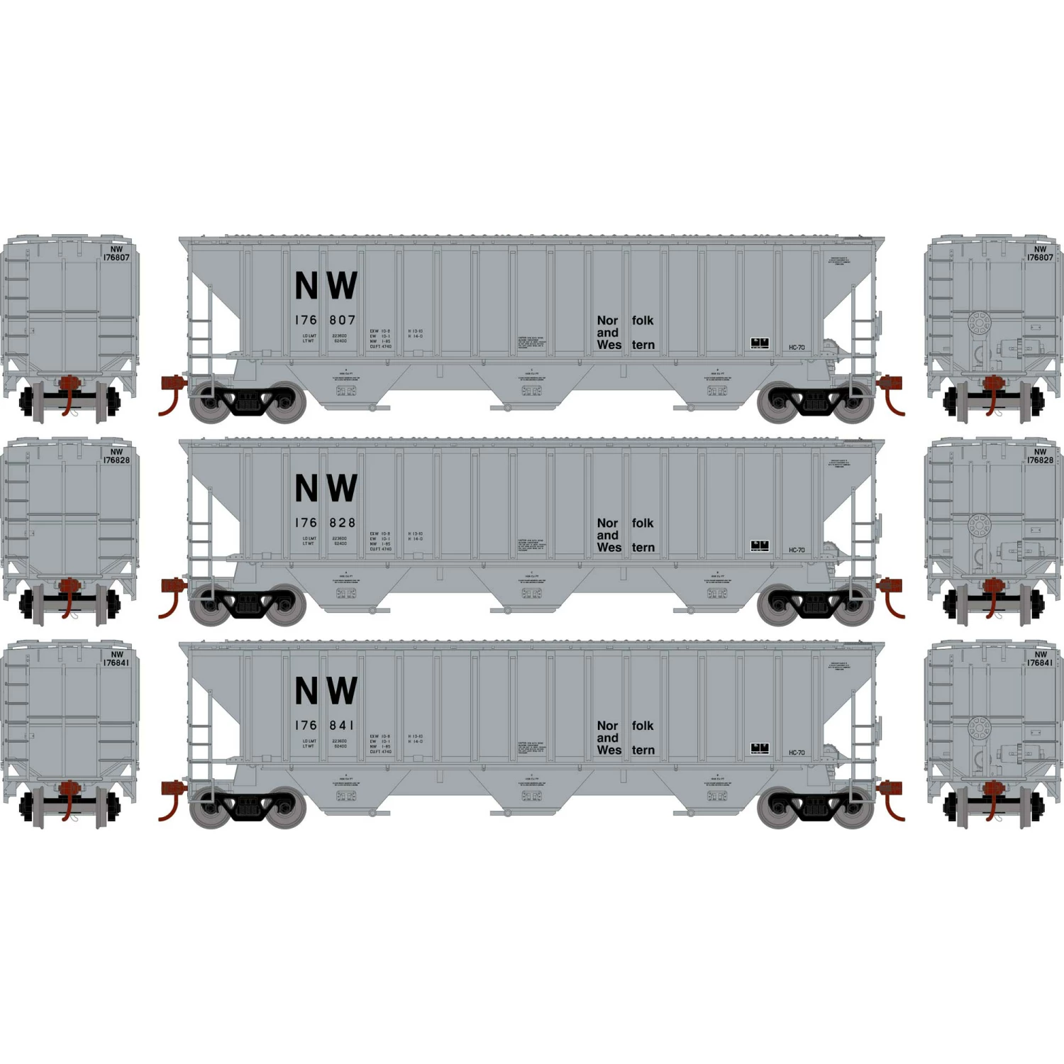 Athearn HO RTR PS 4740 Covered Hopper, N&W (3) for Freight Cars