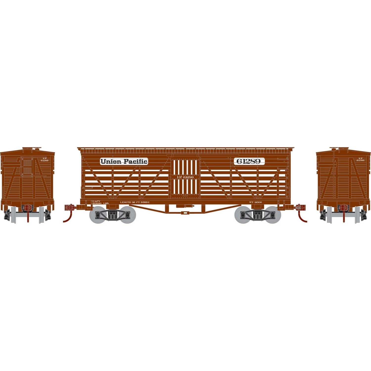 Athearn N 36′ Old Time Stock Car, UP #61289 for Freight Cars