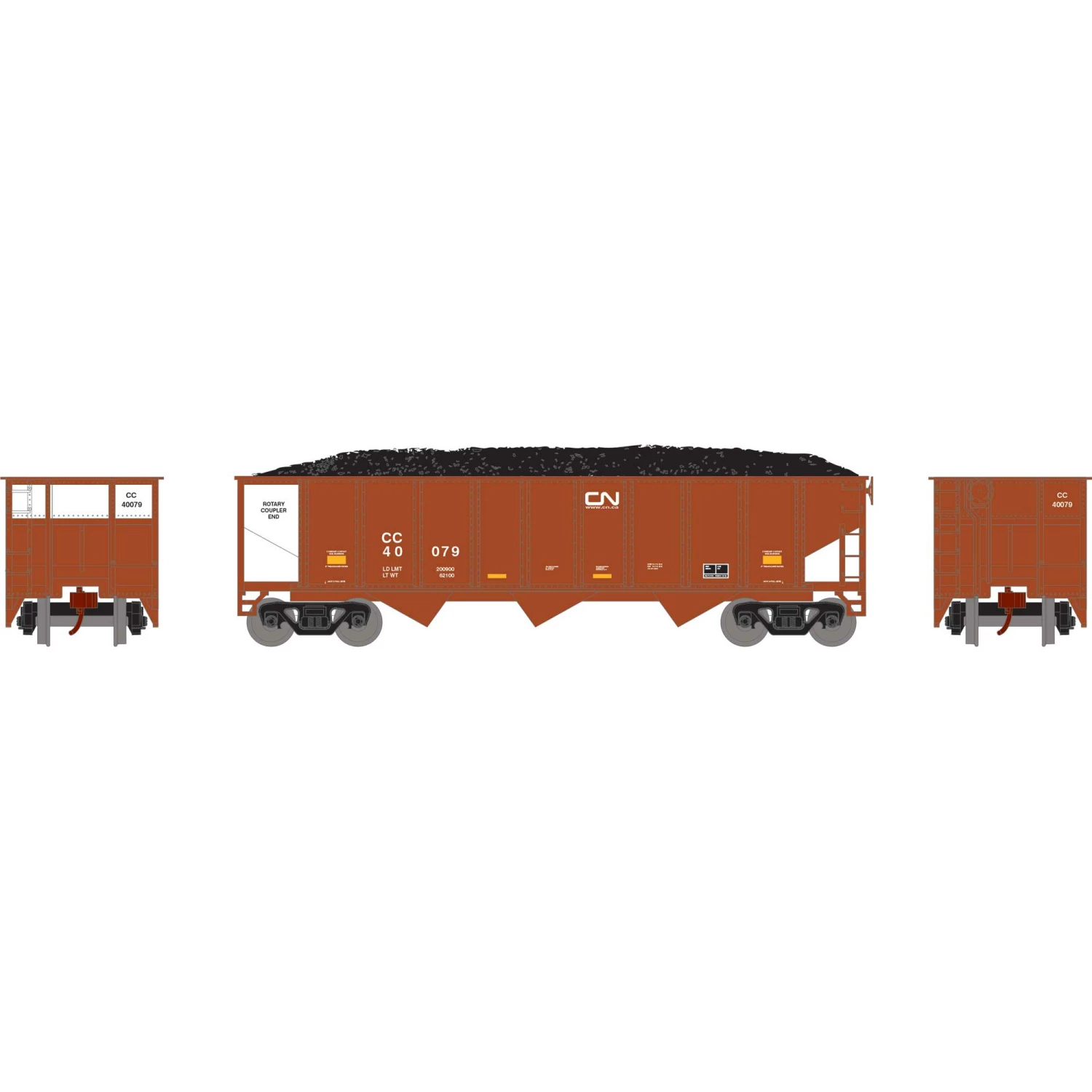 Athearn N 40′ 3-Bay Ribbed Hopper with Load, CC #40079 for Freight Cars