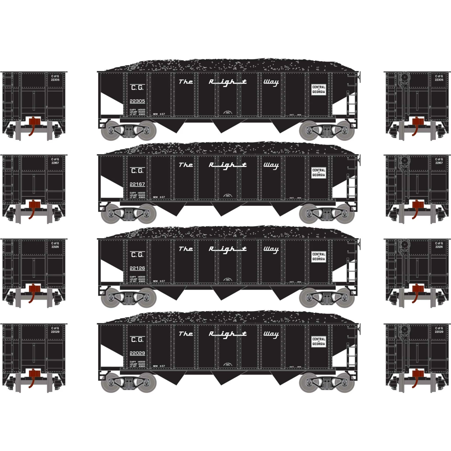 Athearn N 40′ 3-Bay Ribbed Hopper with Load, CG #1 (4) for Freight Cars