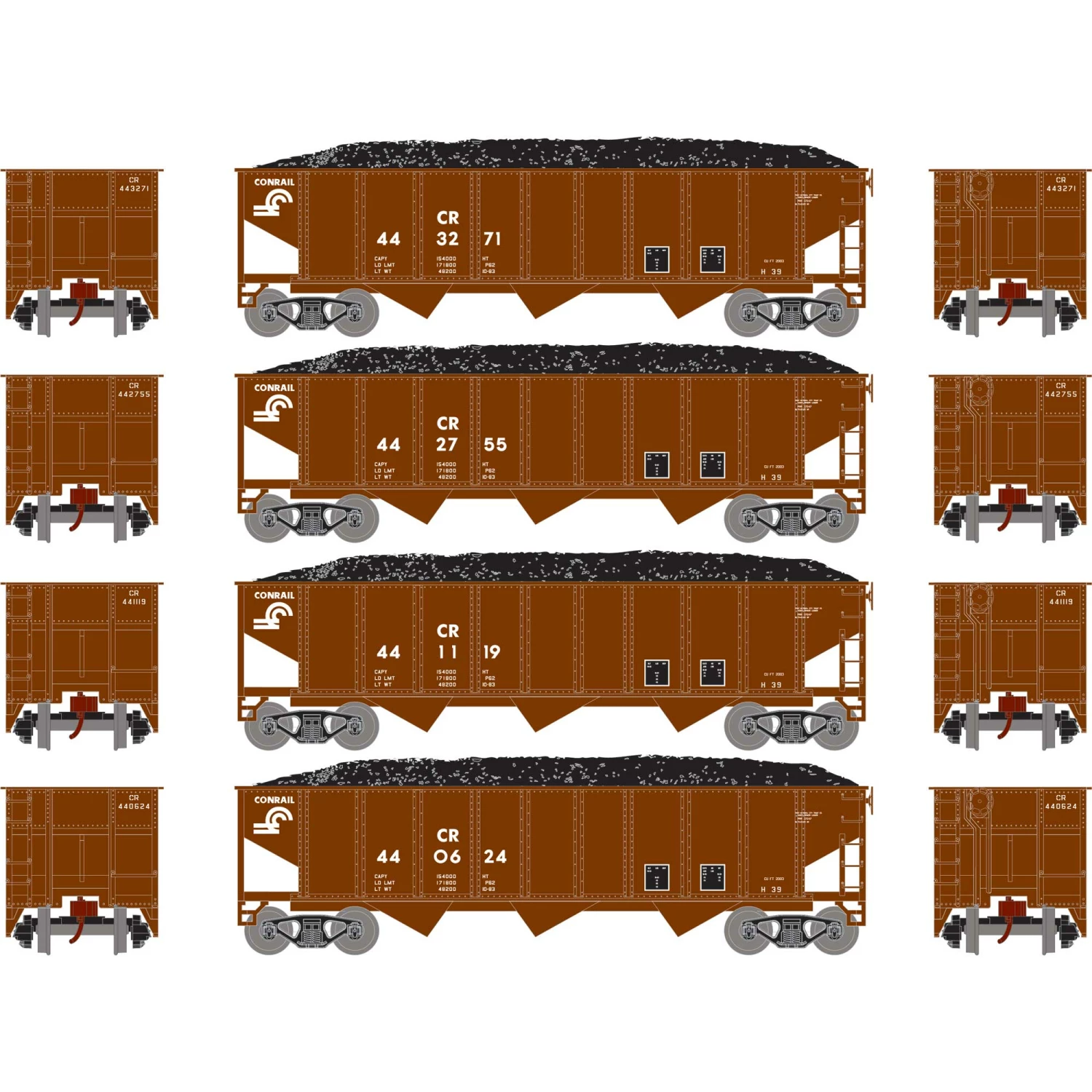 Athearn N 40′ 3-Bay Ribbed Hopper with Load, CR #2 (4) for Freight Cars