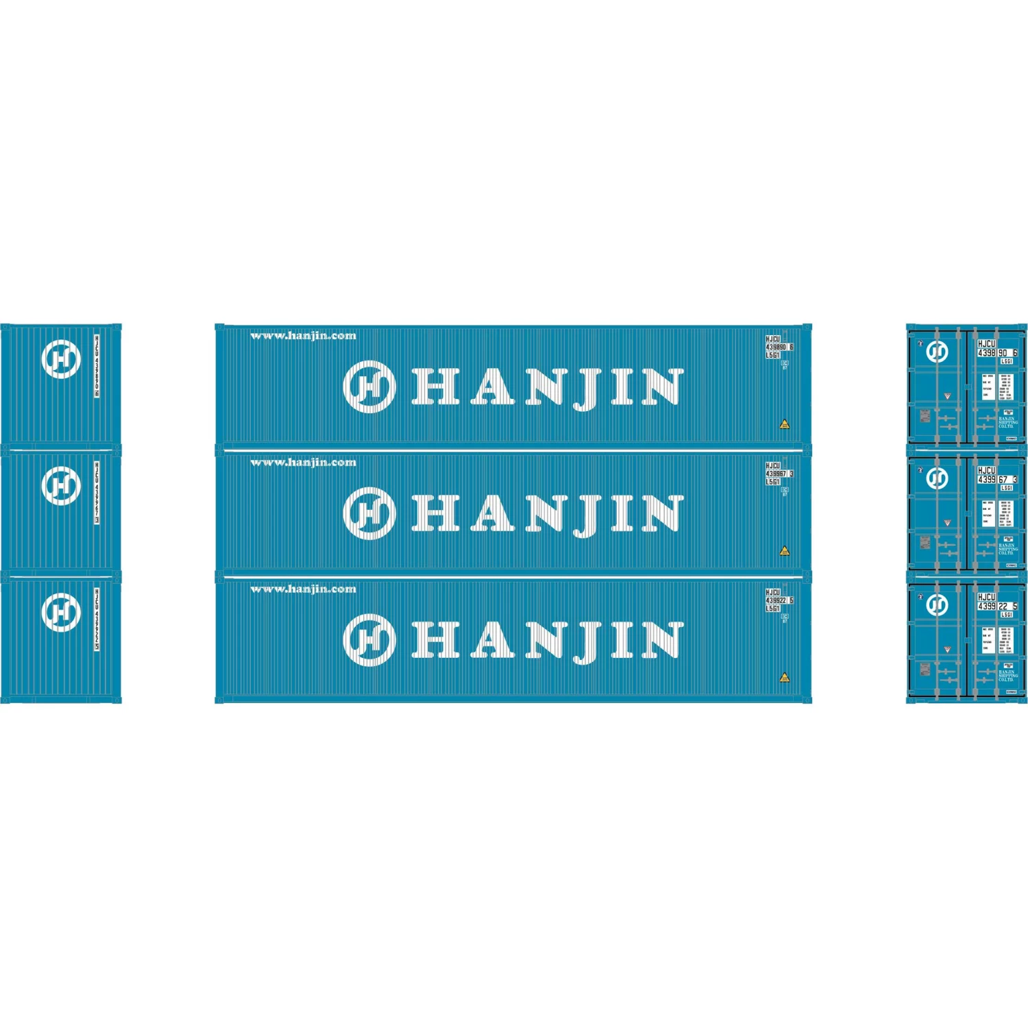 Athearn N 40′ Corrugated Low-Cube Container, Hanjin #2 (3) for Vehicles & Containers