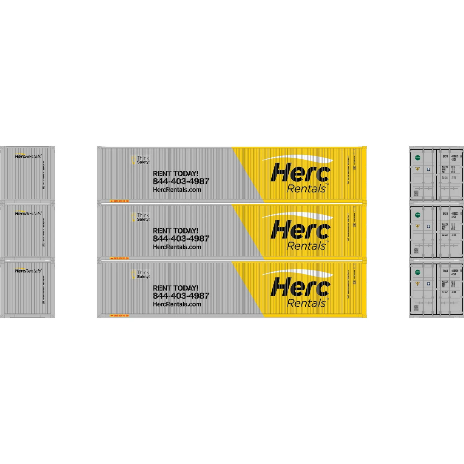 Athearn N 40′ Low Cube Container, EASU #2 (3) for Freight Cars