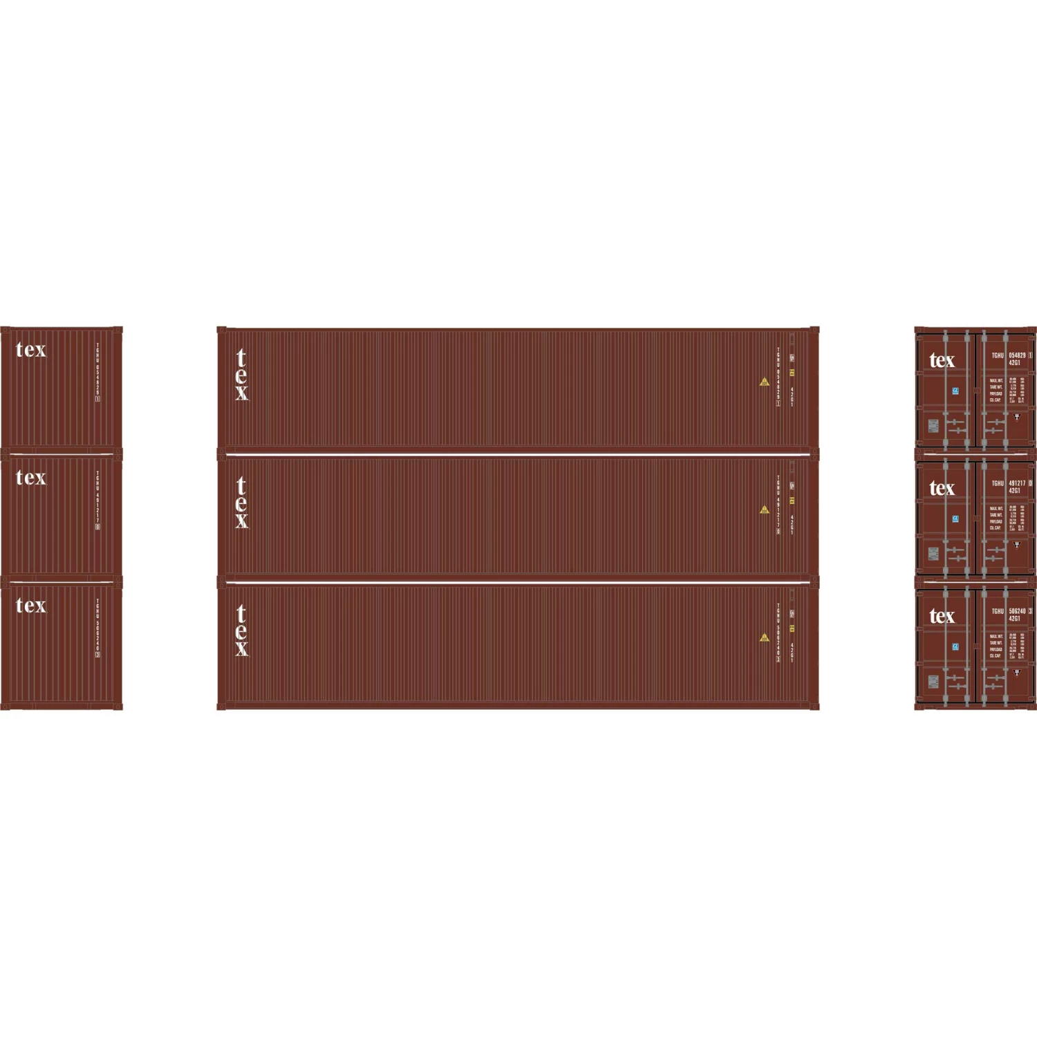 Athearn N 40′ Low Cube Container, TGHU #1 (3) for Freight Cars