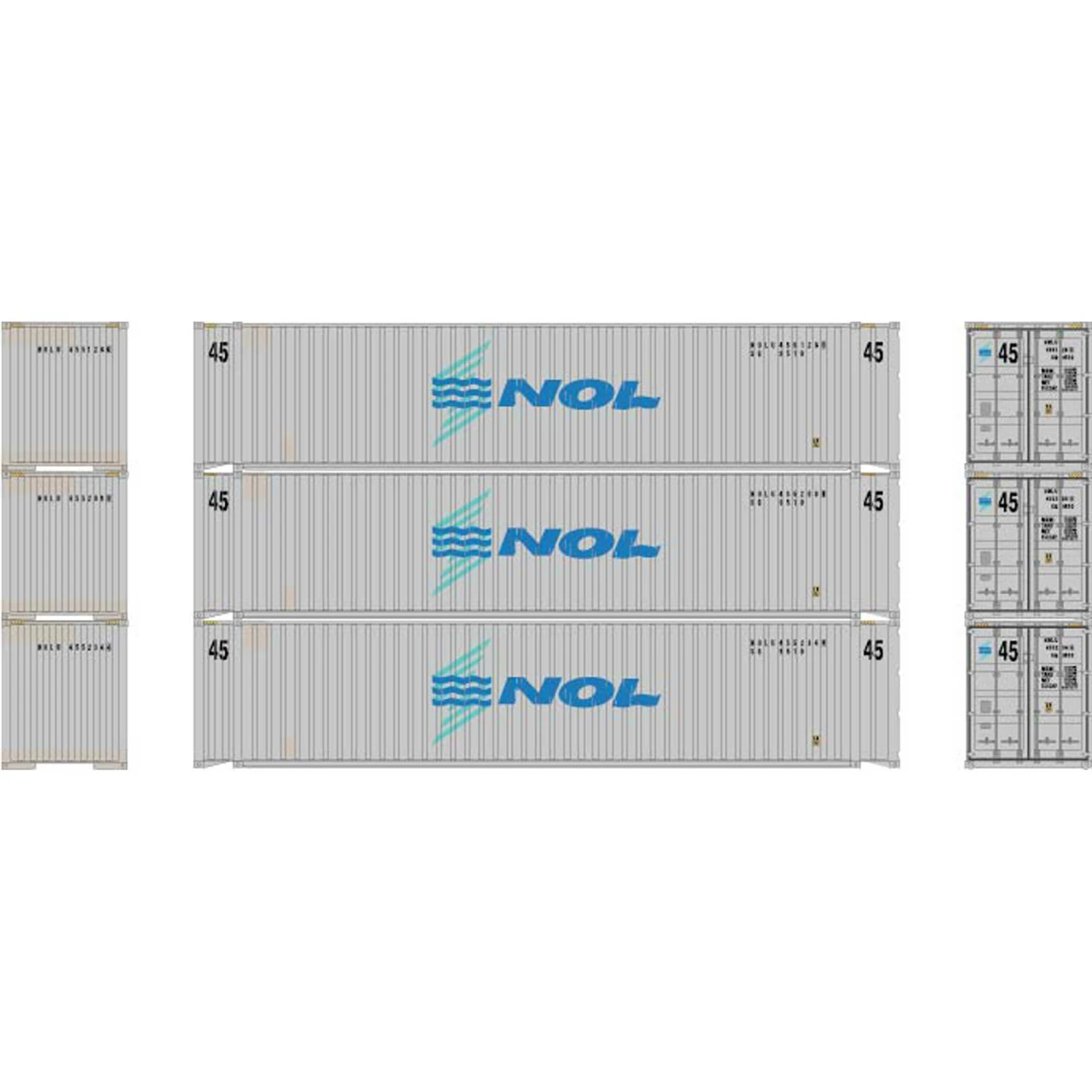 Athearn N 45′ Container, NOL #2 (3) for Freight Cars