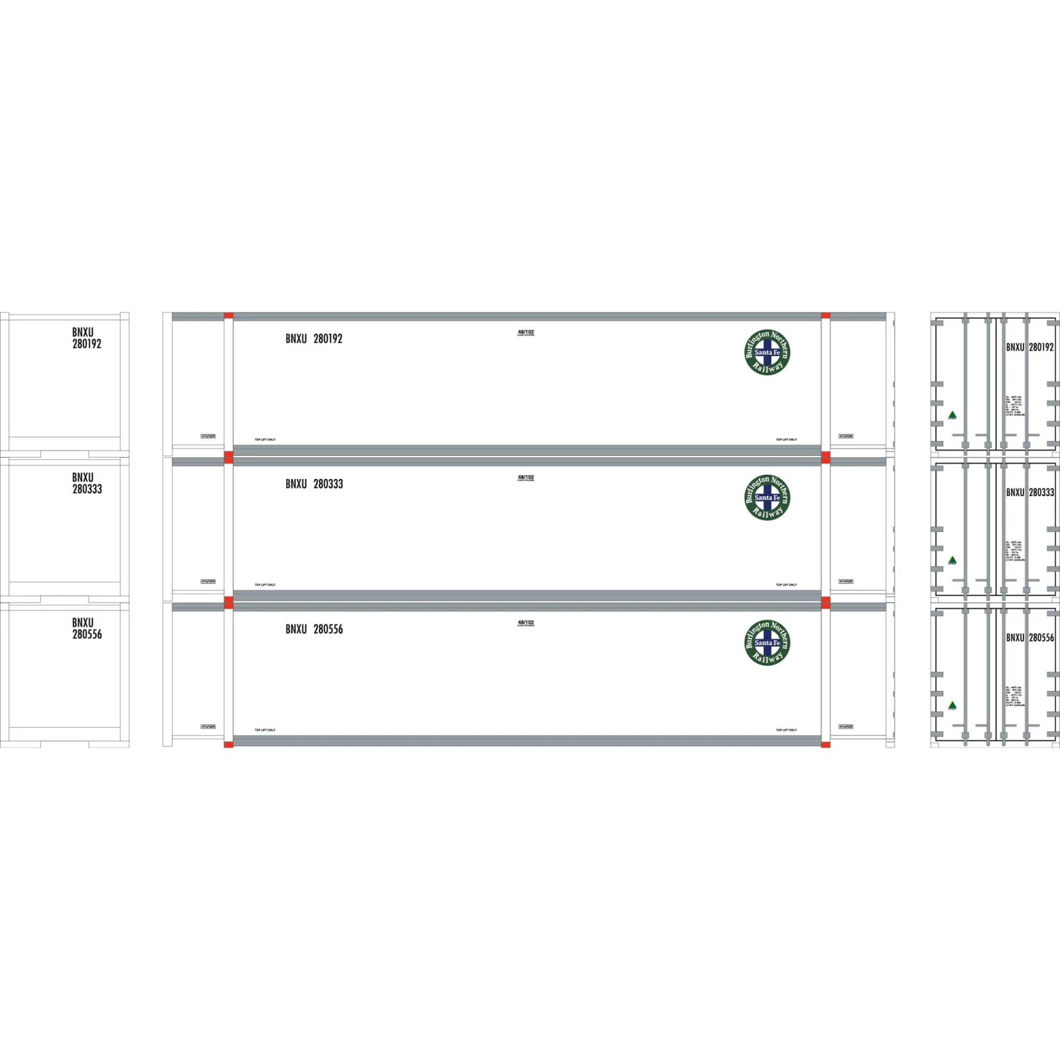 Athearn N 48′ Container, BNSF #2 (3) for Freight Cars