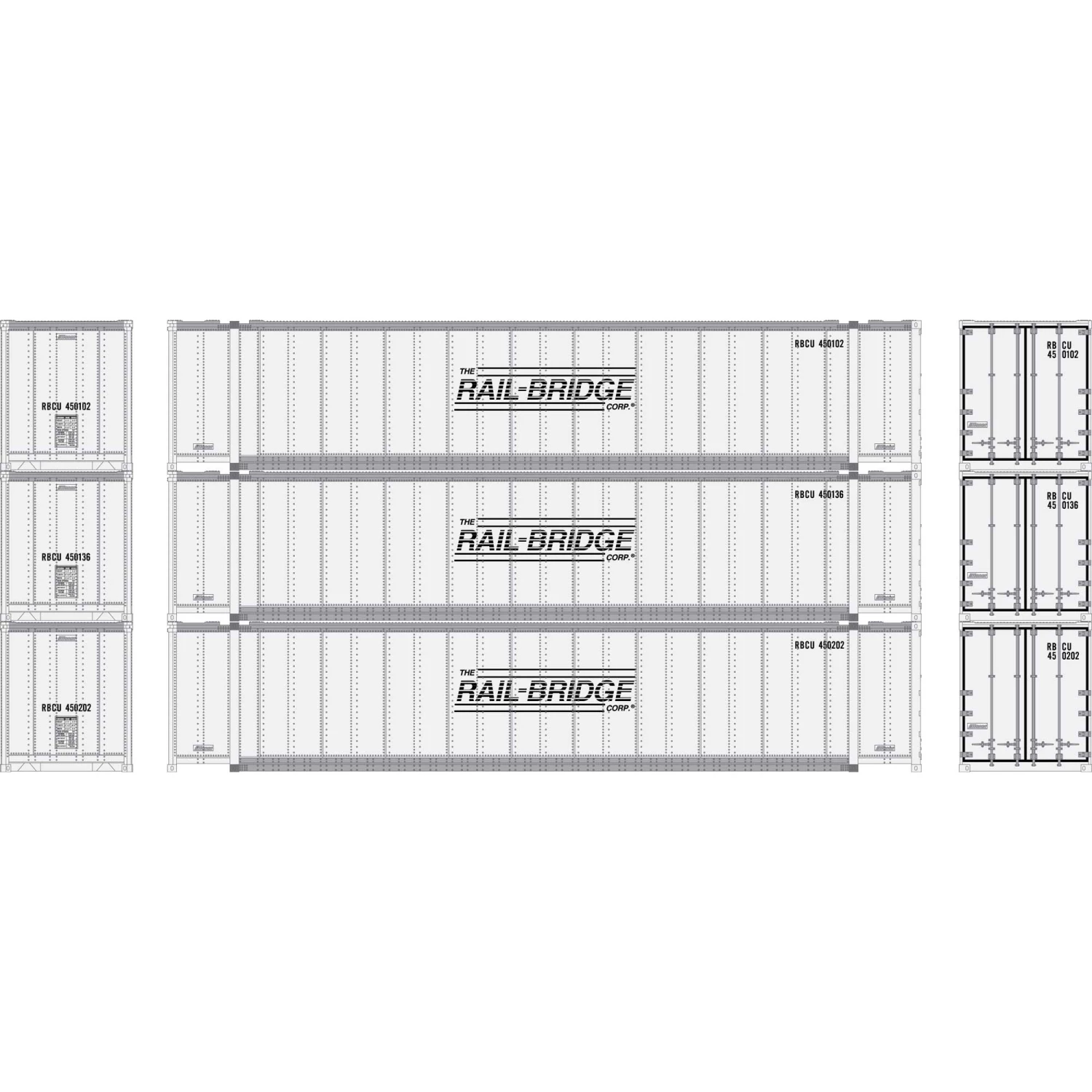 Athearn N 48′ Container, Rail Bridge #2 (3) for Freight Cars