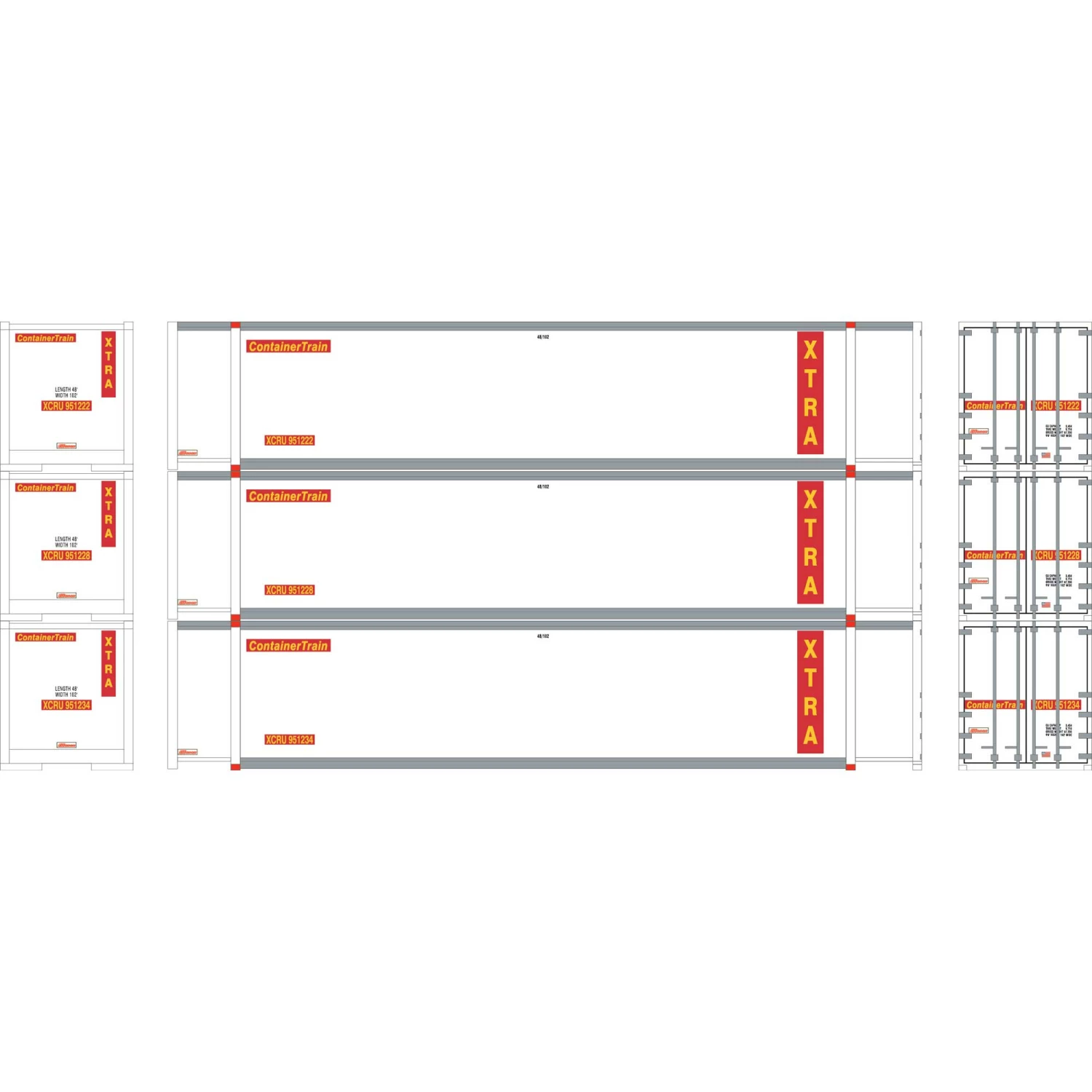 Athearn N 48′ Container, XTRA #1 (3) for Freight Cars