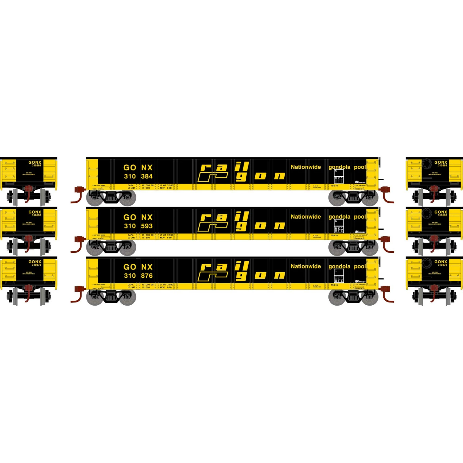 Athearn N 52′ Mill Gondola, GONX #1 (3) for Freight Cars