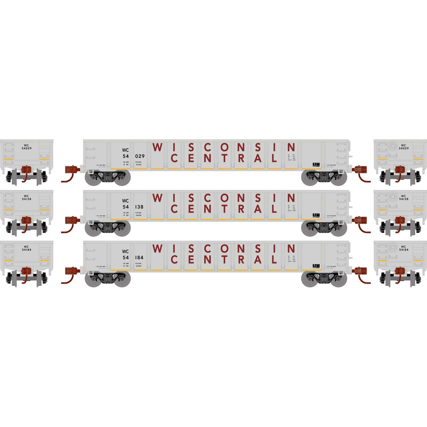 Athearn N 52′ Mill Gondola, Wisconsin Central (3) for Freight Cars