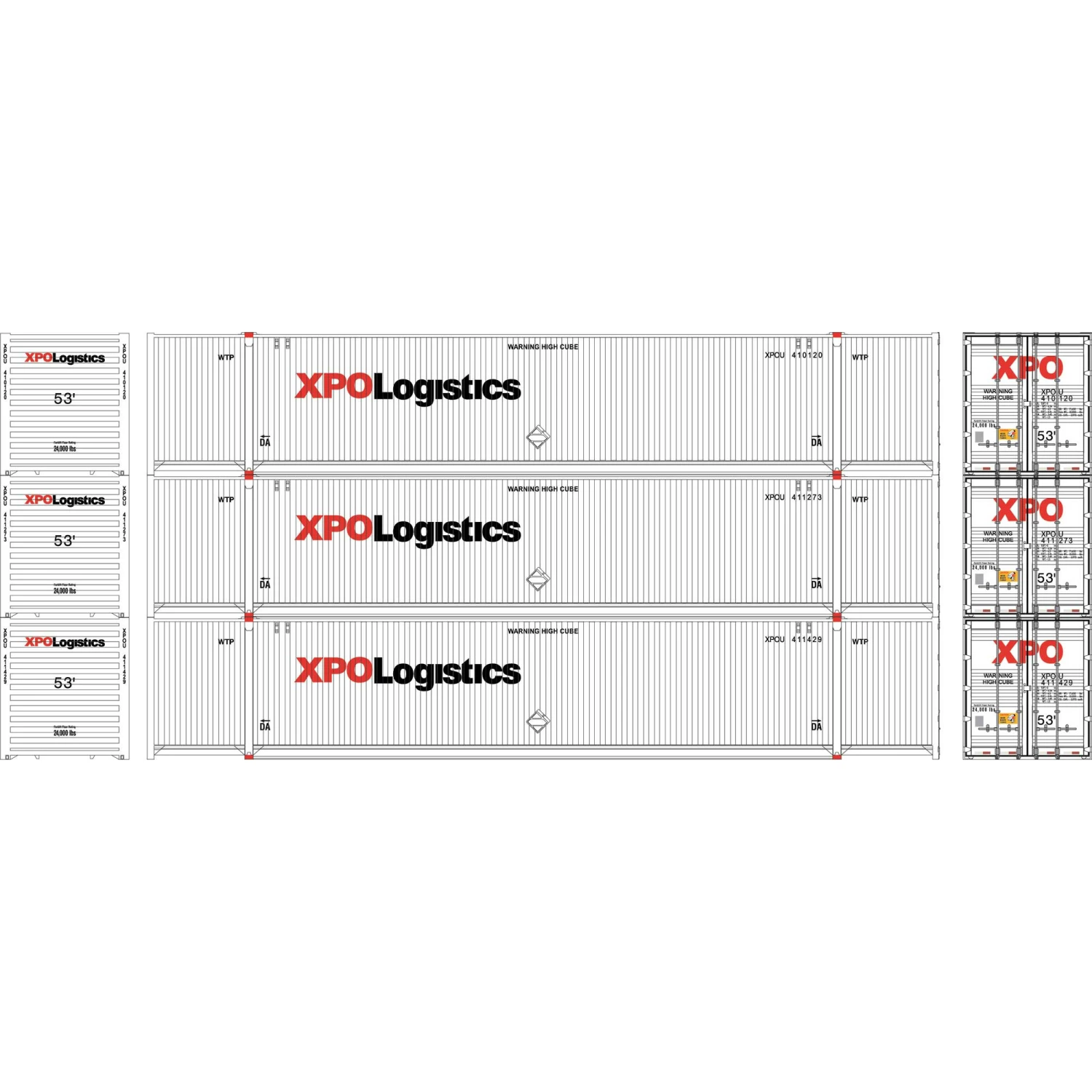 Athearn N 53′ CIMC Container, XPO #1 (3) for Freight Cars