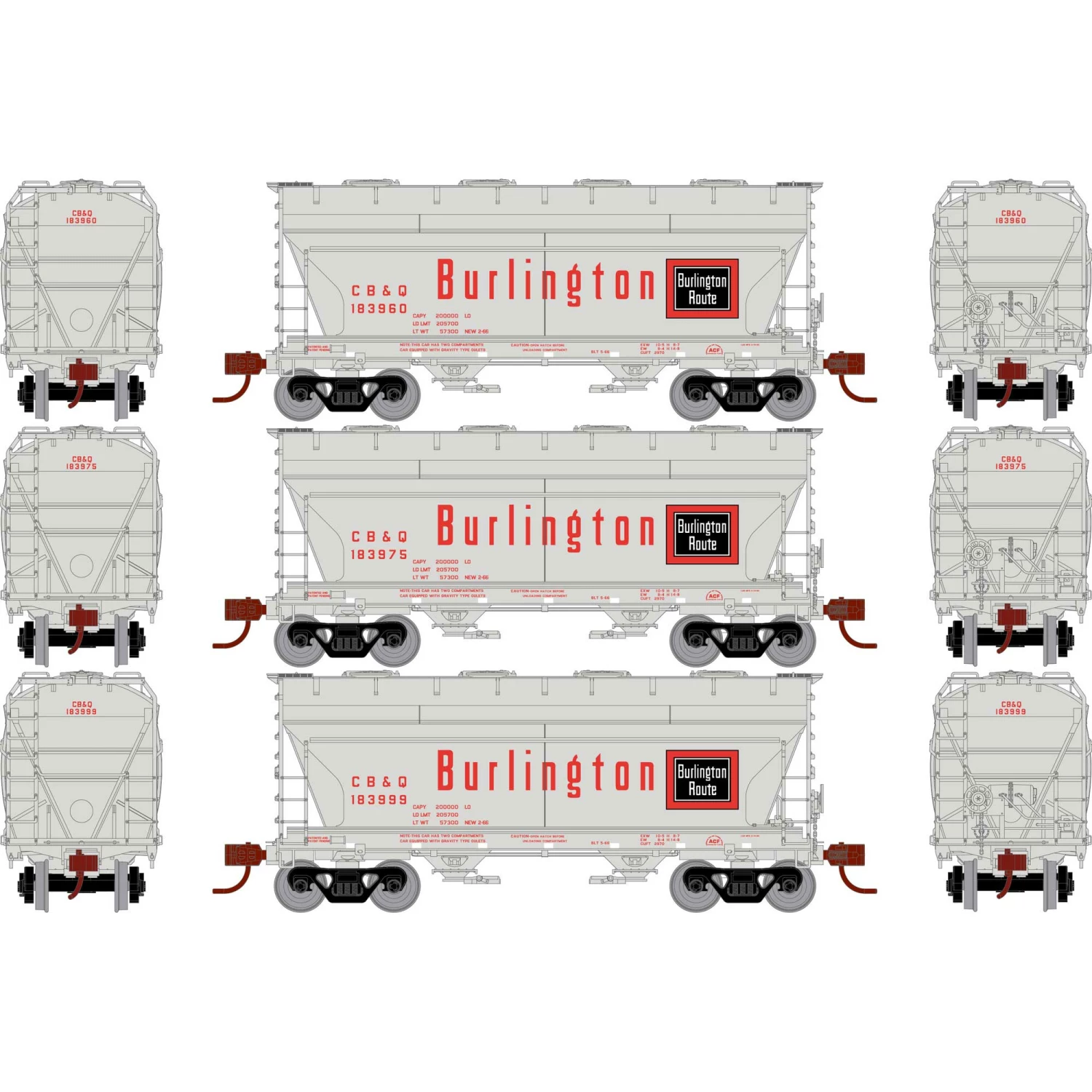 Athearn N ACF 2970 Covered Hopper, CB&Q (3) for Freight Cars