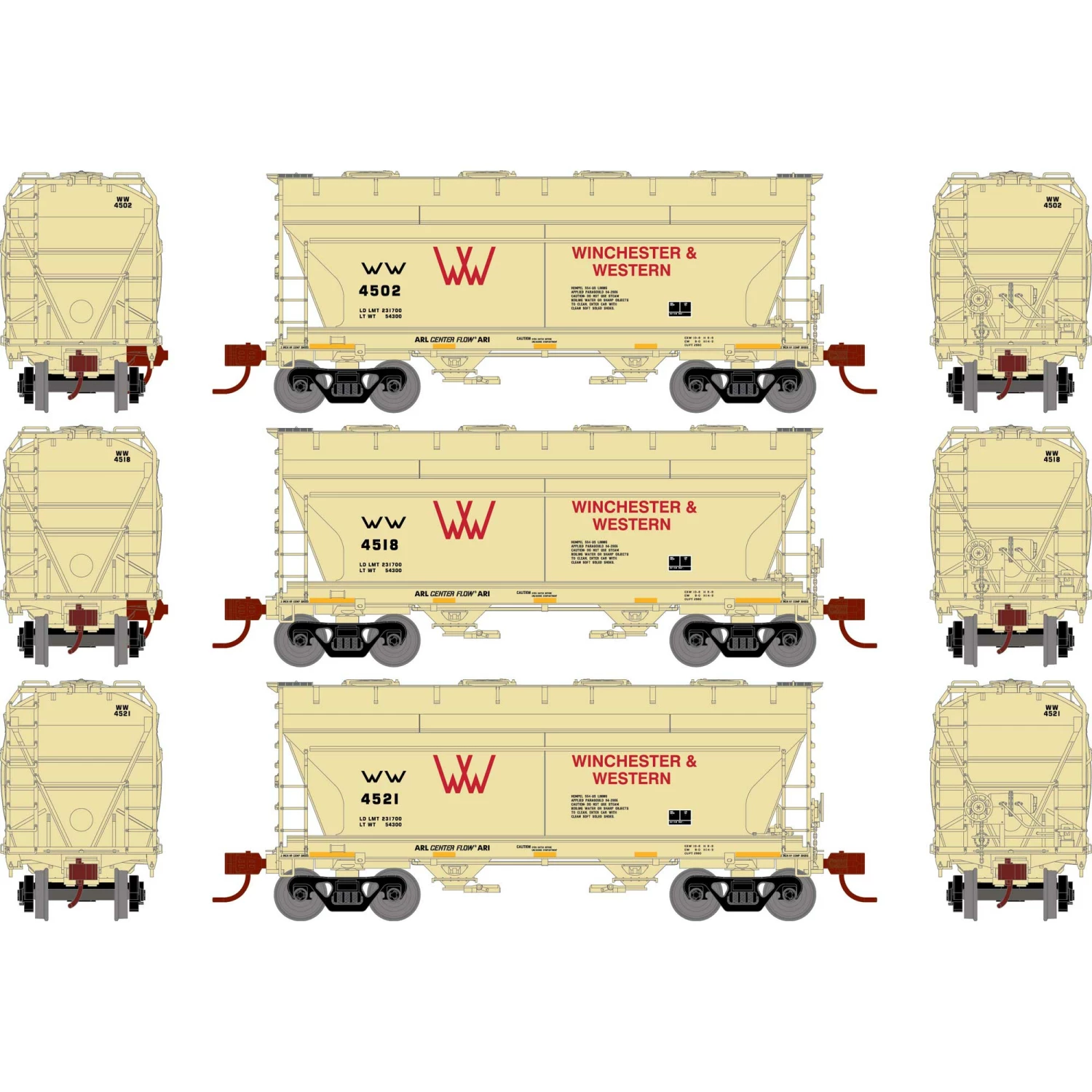 Athearn N ACF 2970 Covered Hopper, W&W (3) for Freight Cars