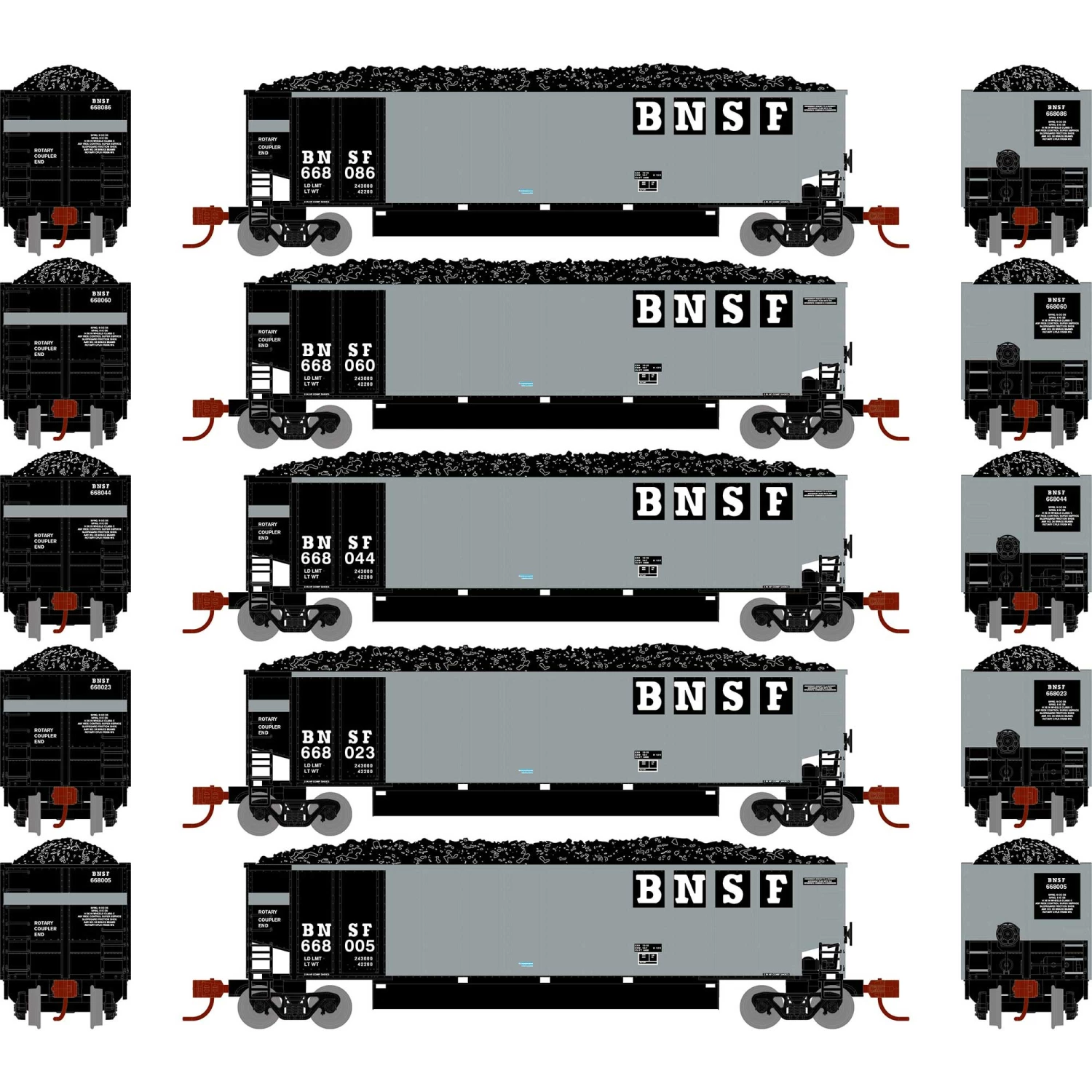 Athearn N Bethgon Coalporter with Load, BNSF #2 (5) for Freight Cars