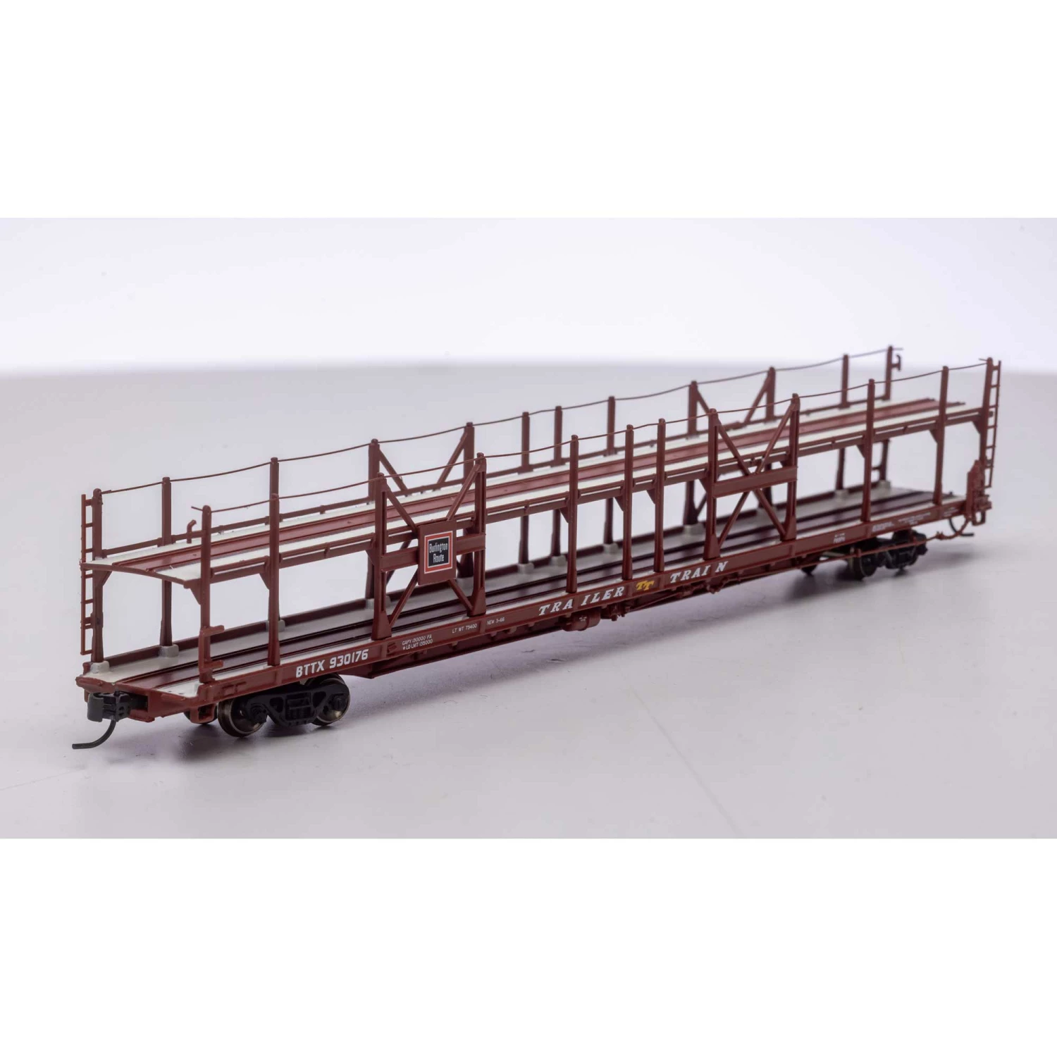 Operationally, these cars are appropriate for any layout set from the 1960s to the early 1980s. The Auto Racks would be fastened to the 89’ flatcar for auto service from Detroit.
