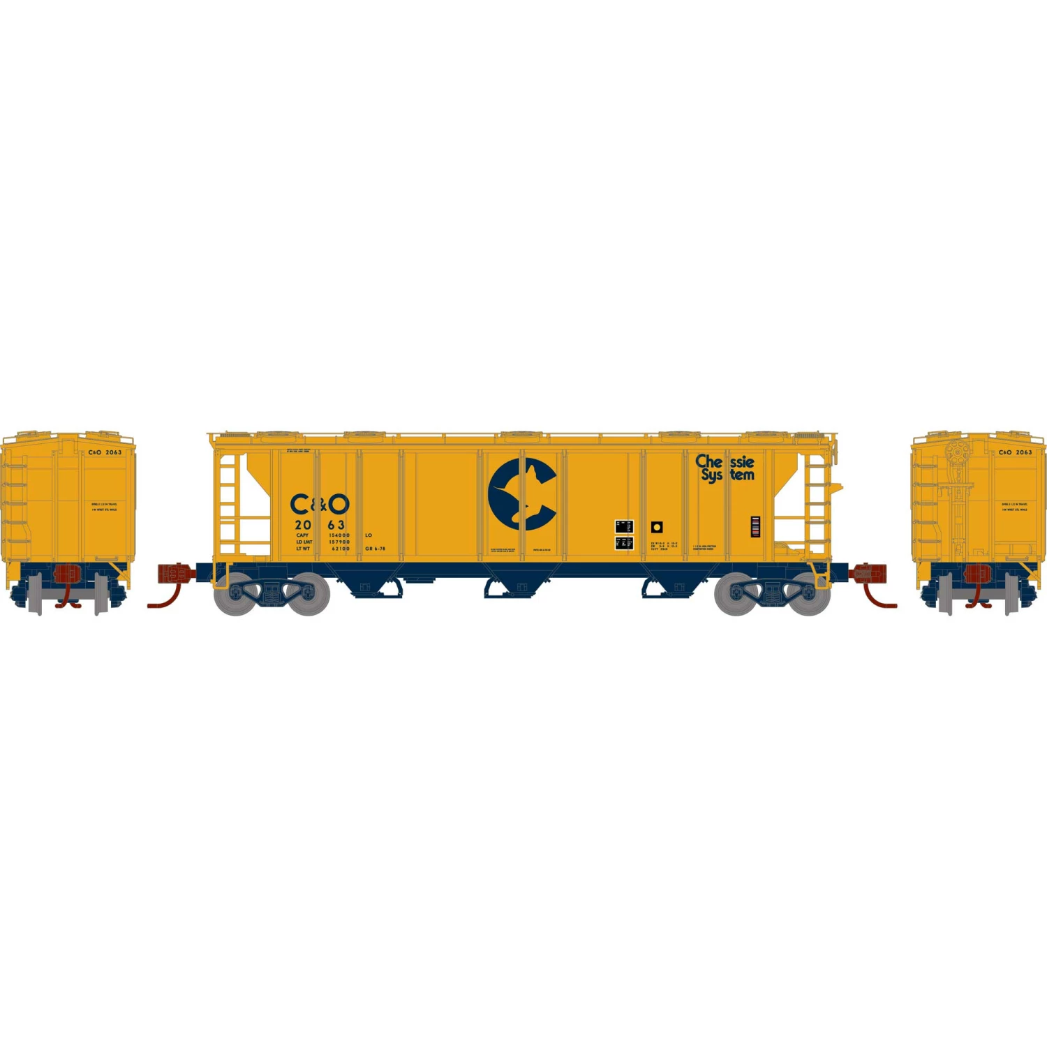 Athearn N PS-2 2893 3-Bay Covered Hopper, C&O #2063 for Freight Cars